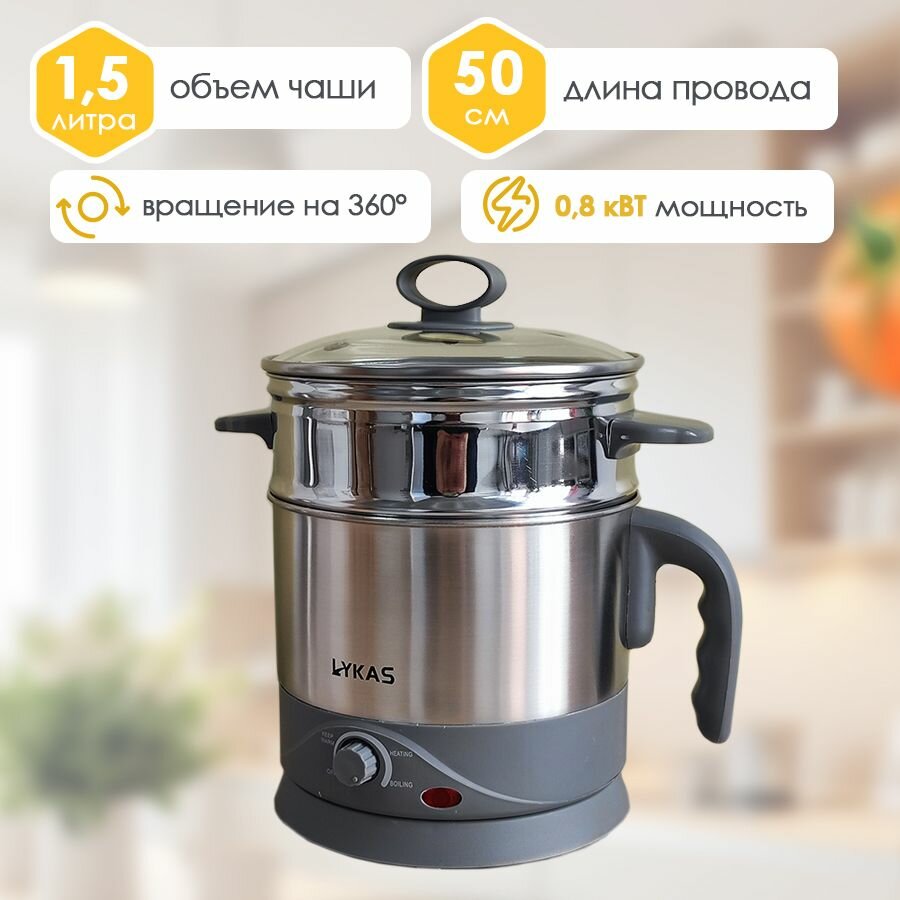 Мультиварка , пароварка на 1,5л в комплекте с электрический чайник 1,8л, набор, цвет серый, Lykas информация: