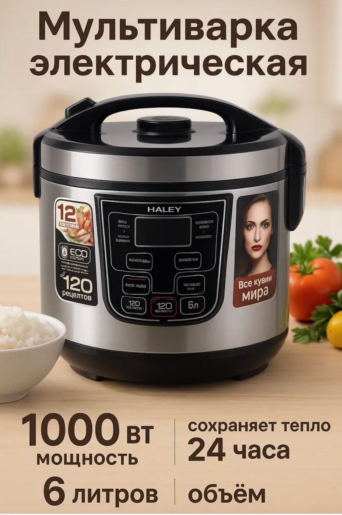 10 цен на Мультиварка Haley HY-2202, с функцией пароварки, 12 программ, 6л