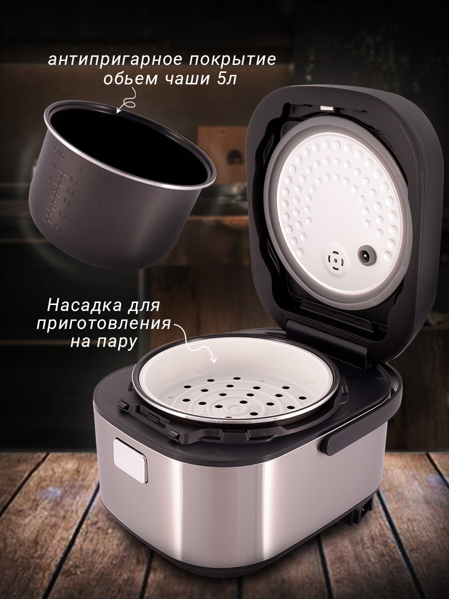Мультиварка электрическая для приготовления на пару, пароварка, скороварка с антипригарной чашей, 5 л информация: