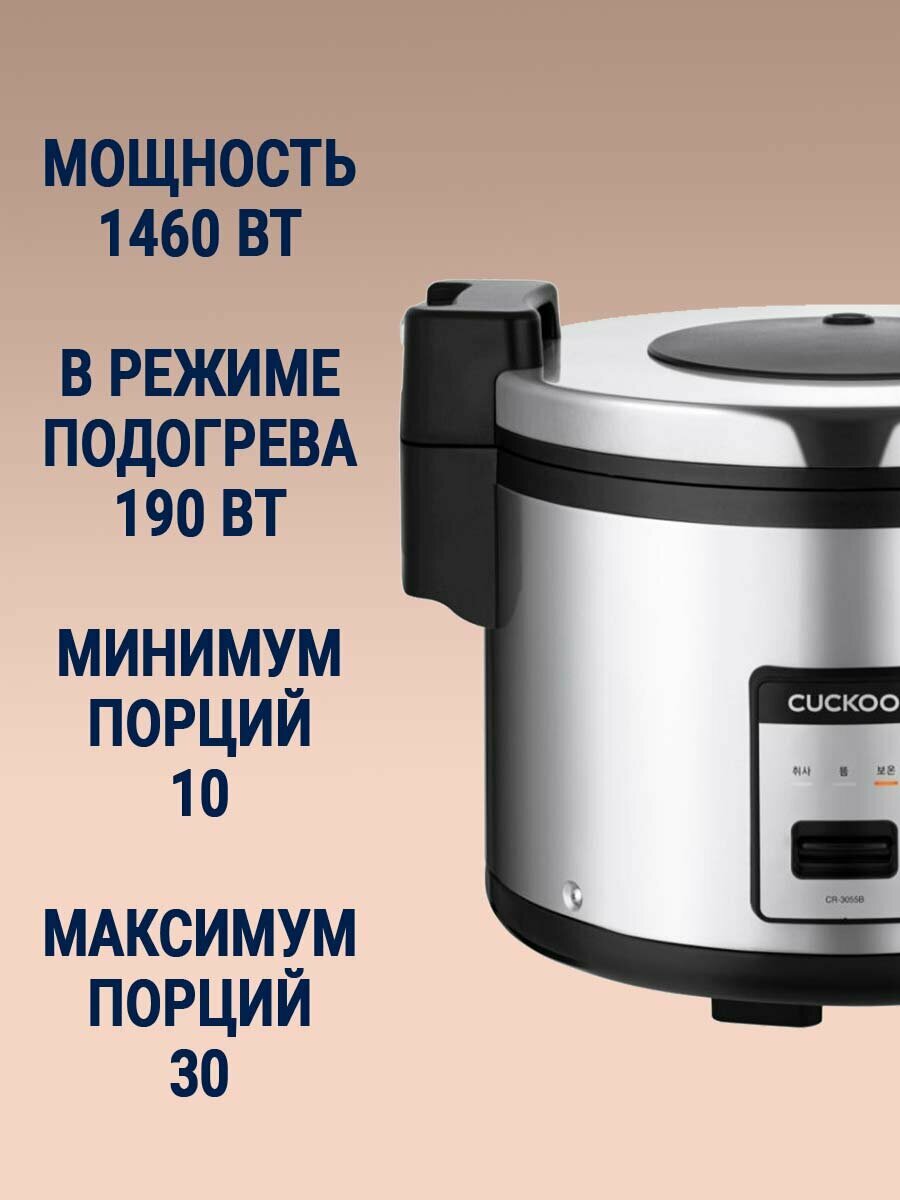 Коммерческая рисоварка на 30 порций для ресторанов и кафе Cuckoo CR-3055B информация: