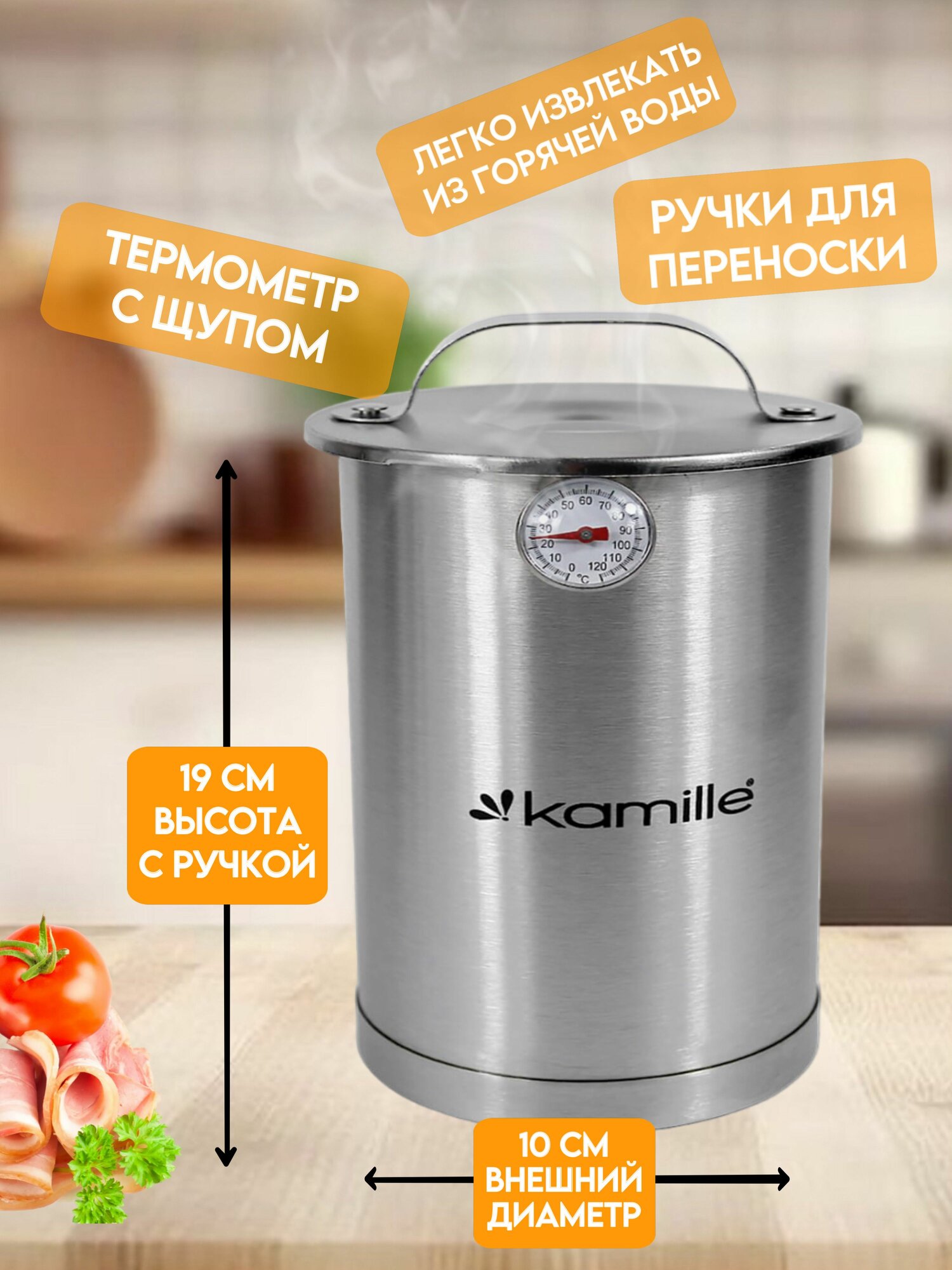 Ветчинница из нержавеющей стали с термометром 1,5 л. Kamille КМ-6506 информация: