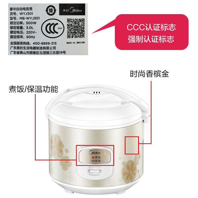 Мини-рисоварка Midea MB-WYJ301, пластик, алюминий, 3л, бежевая информация: