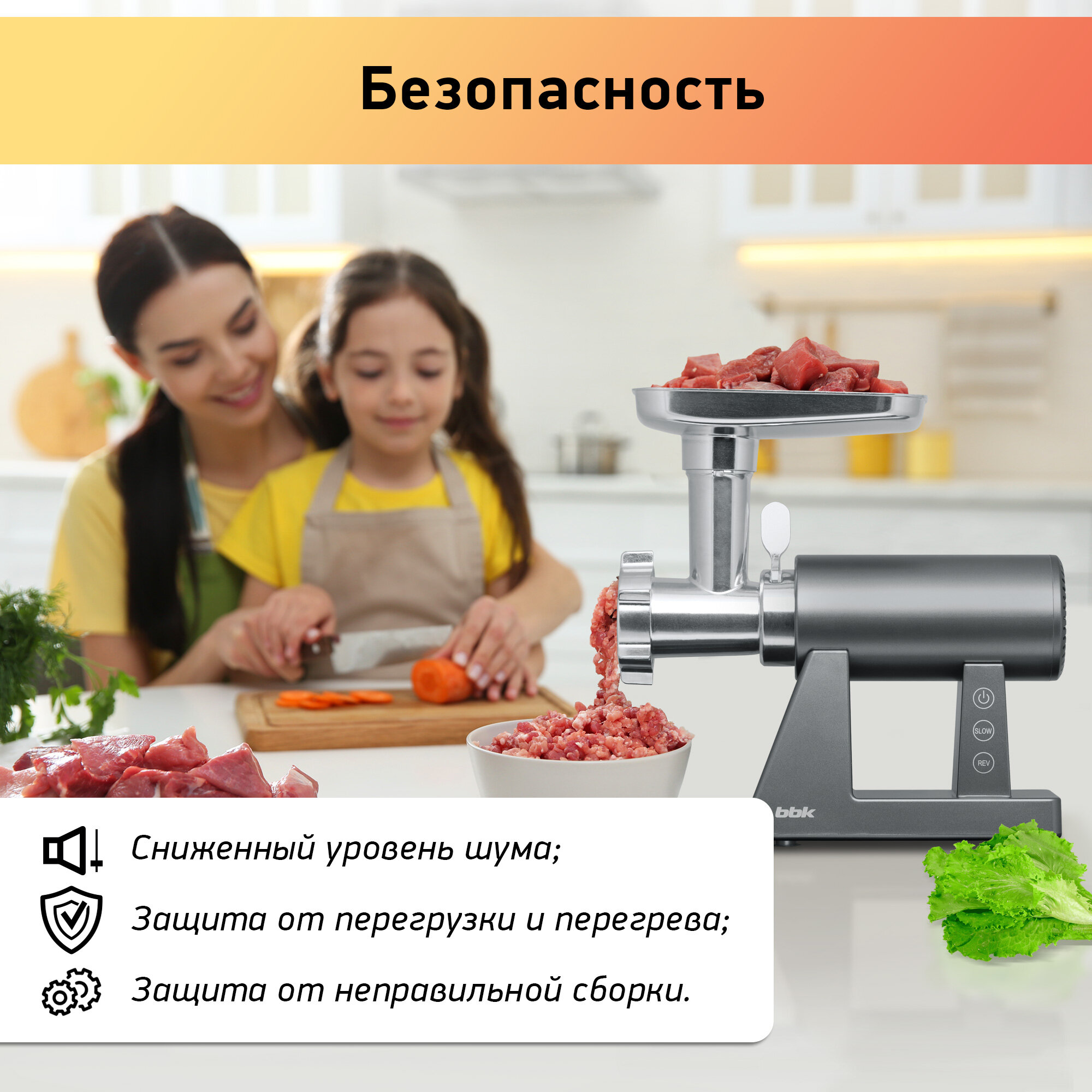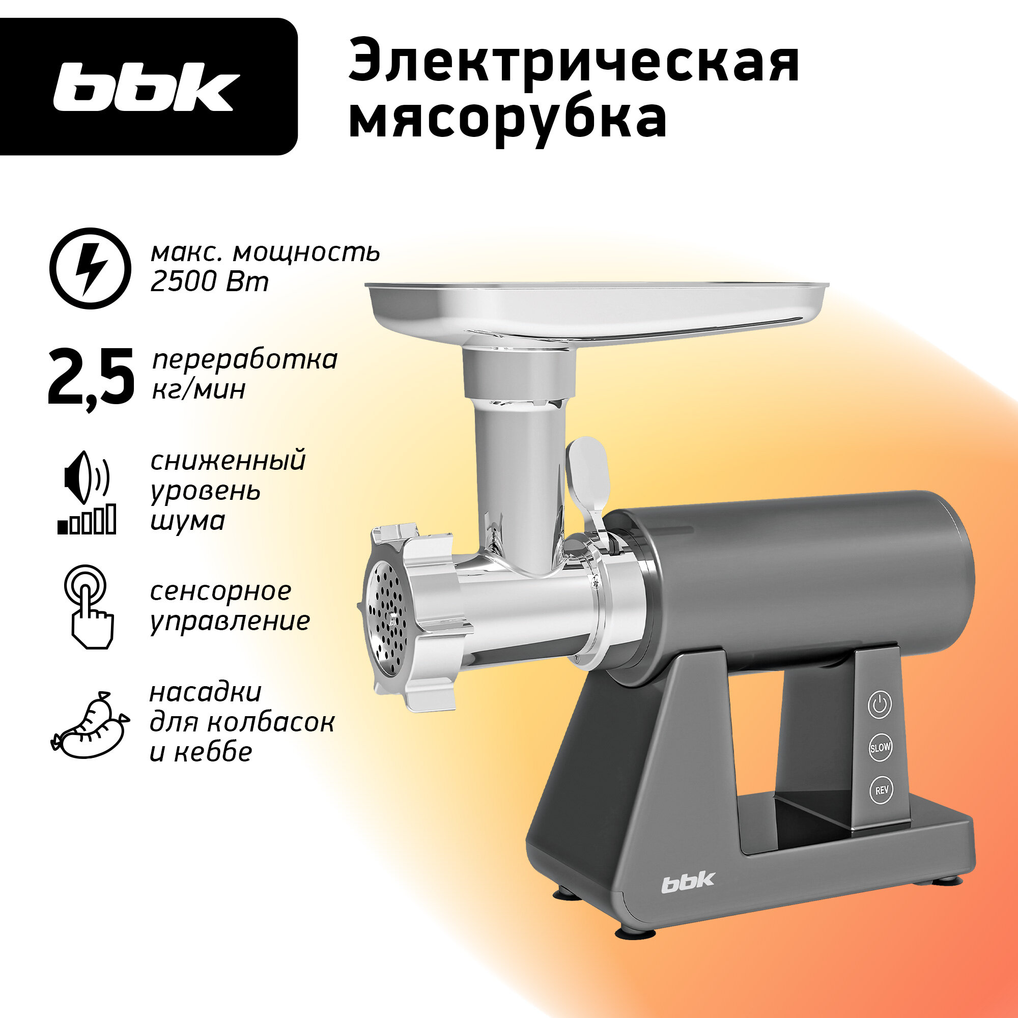 Мясорубка электрическая BBK MG3002 серый, мощность 500 Вт, функция реверса, 7 насадок в комплекте информация: