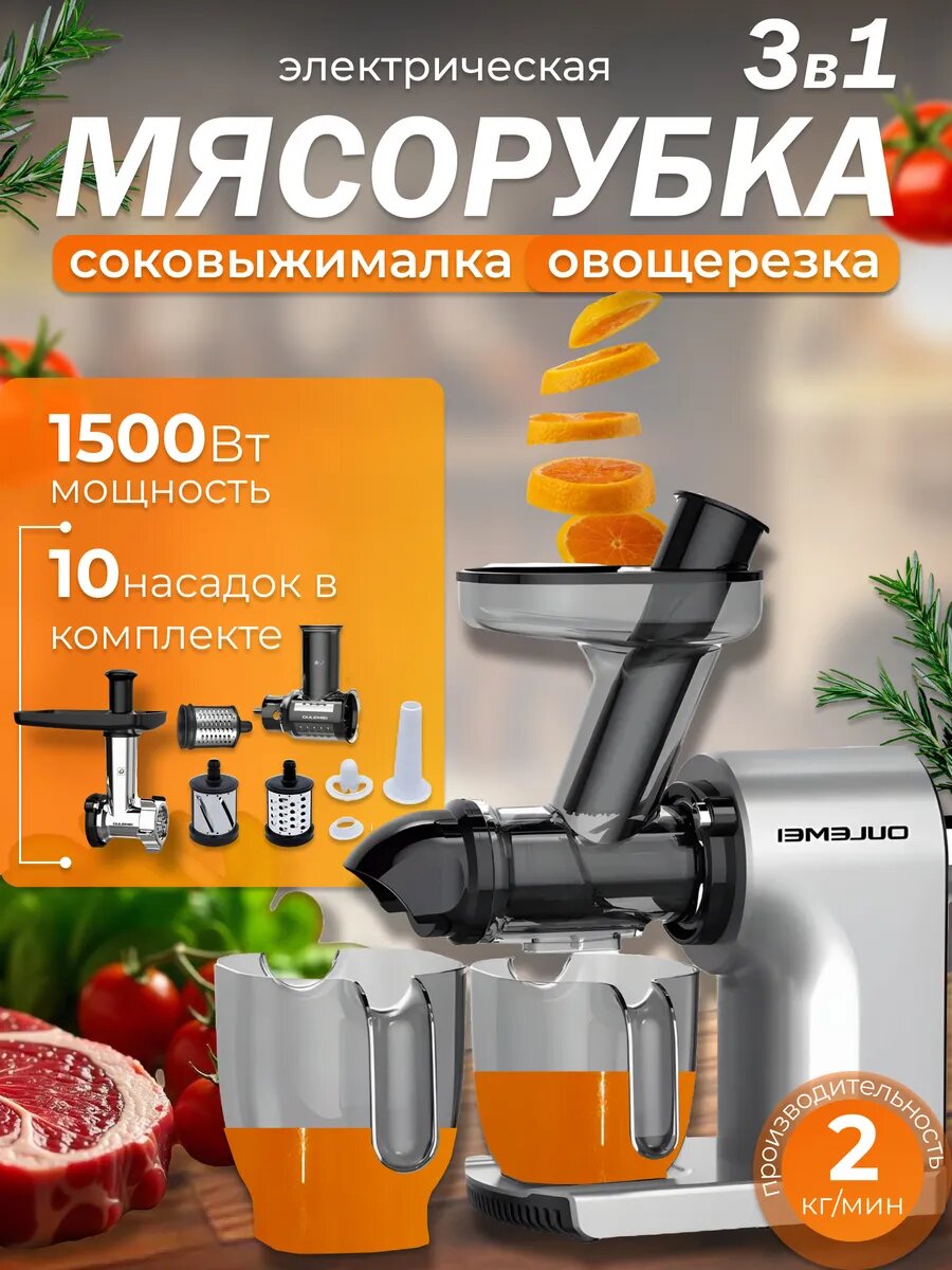 10 цен на Мясорубка, соковыжималка, овощерезка, OULEMEI OLM-YZA004, 3в1, шнековая, 1500Вт, с насадками