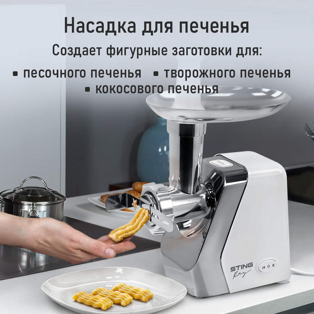 | Насадки | насадка для кеббе / насадка для приготовления колбас / насадка для шинковки / соковыжималка / насадка для печенья |