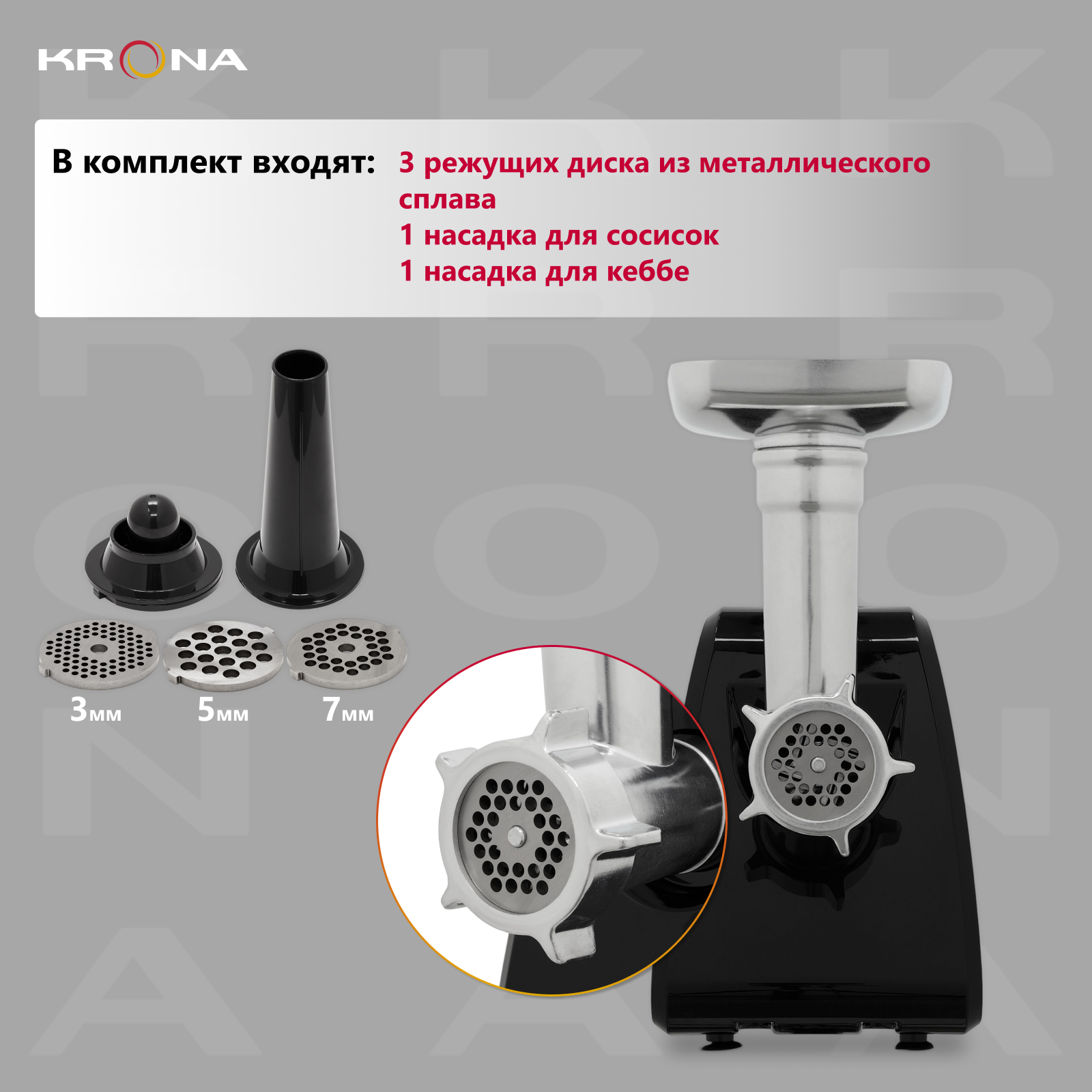 Электрическая мясорубка с насадками KRONA Wolf Black 1000W (KRMG02) информация: