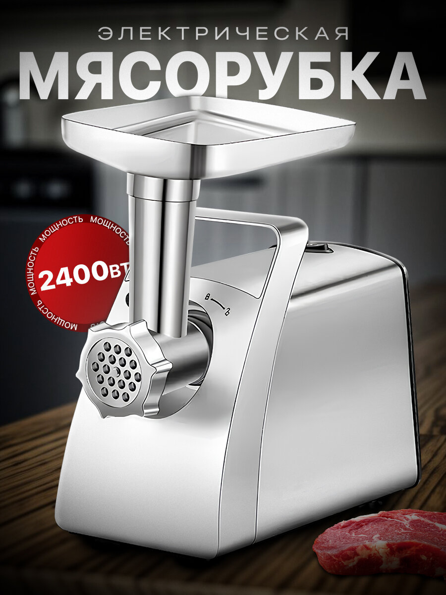 10 цен на Мясорубка , мясорубка электрическая для фарша,2400Вт, функция реверс,3 диска нарезки, насадки для кеббе, колбас, сосисок, домашняя мясорубка