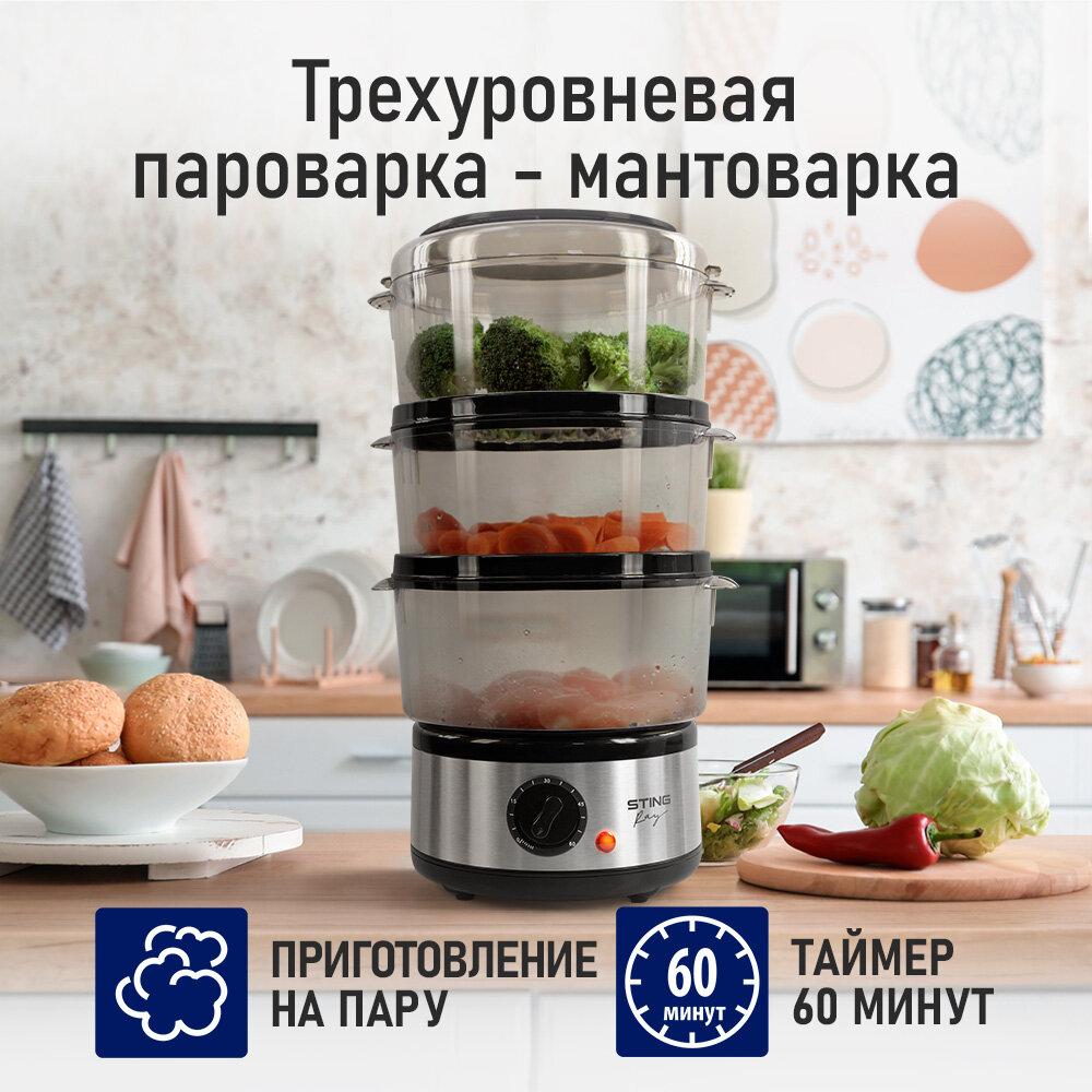 Пароварка мантоварка STINGRAY ST-FS753A черный жемчуг информация:
