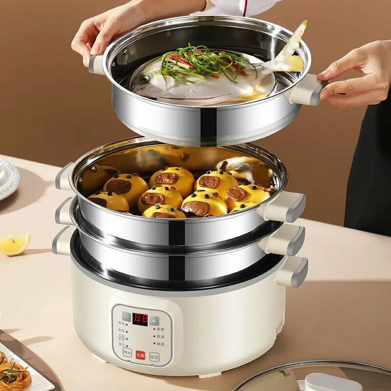10 цен на Многофункциональная электрическая пароварка и кастрюля 6-в-1 для варки, жарки, тушения и приготовления на пару, с антипригарным покрытием