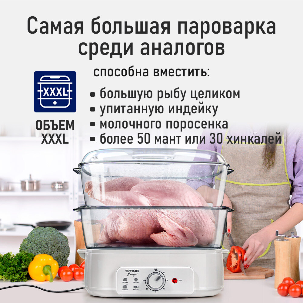 10 цен на Пароварка STINGRAY ST-FS756A белый жемчуг пароварка