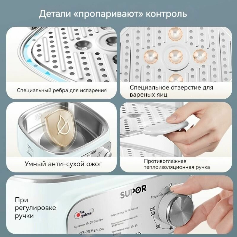 Электрическая пароварка SUPOR, чаша для риса, 8 программ, таймер, 1000 Вт информация: