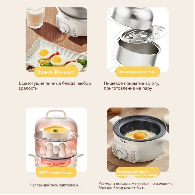 10 цен на Электрическая пароварка Midea, чаша для риса, 8 программ, таймер, 400 Вт