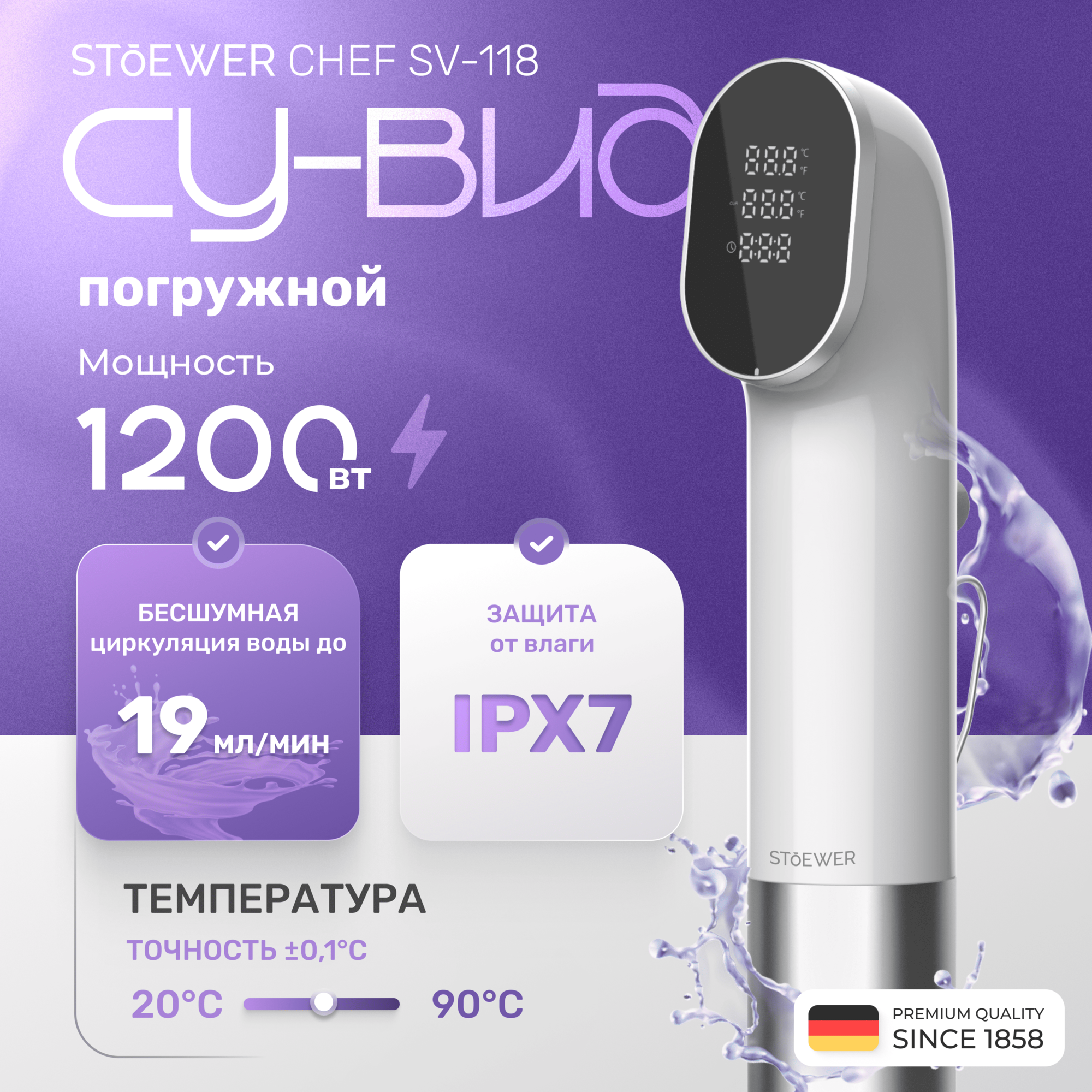 Су-вид STOEWER Штоер Chef SV118 белый, циркуляция воды 360°, мощность 1200 Вт информация: