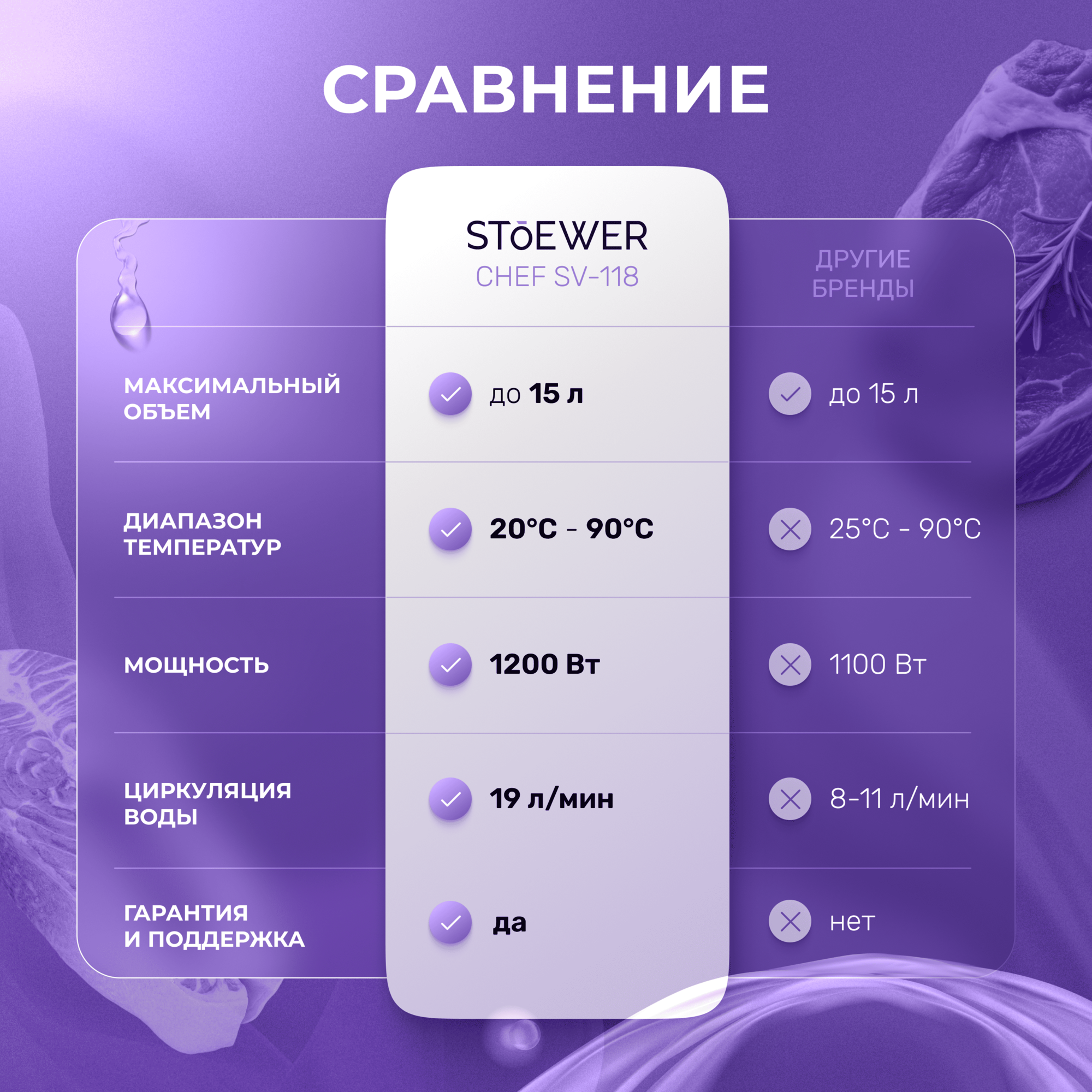 10 цен на Су-вид STOEWER Штоер Chef SV120 черный, профессиональная точность приготовления, мощность 1200 Вт
