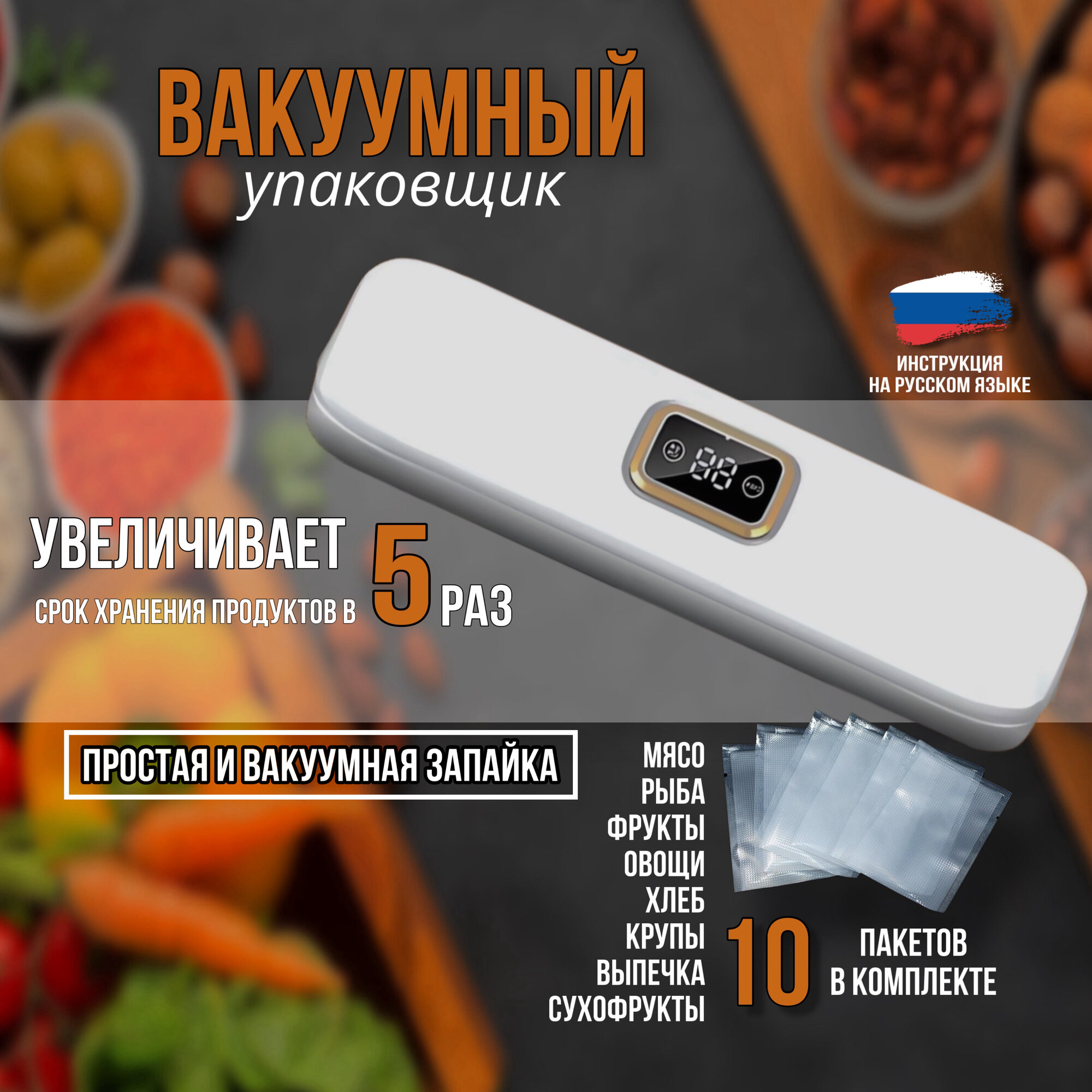 10 цен на Вакууматор продуктов, для сухих и влажных продуктов, белый, 2 режима, 90Вт, 20л/мин