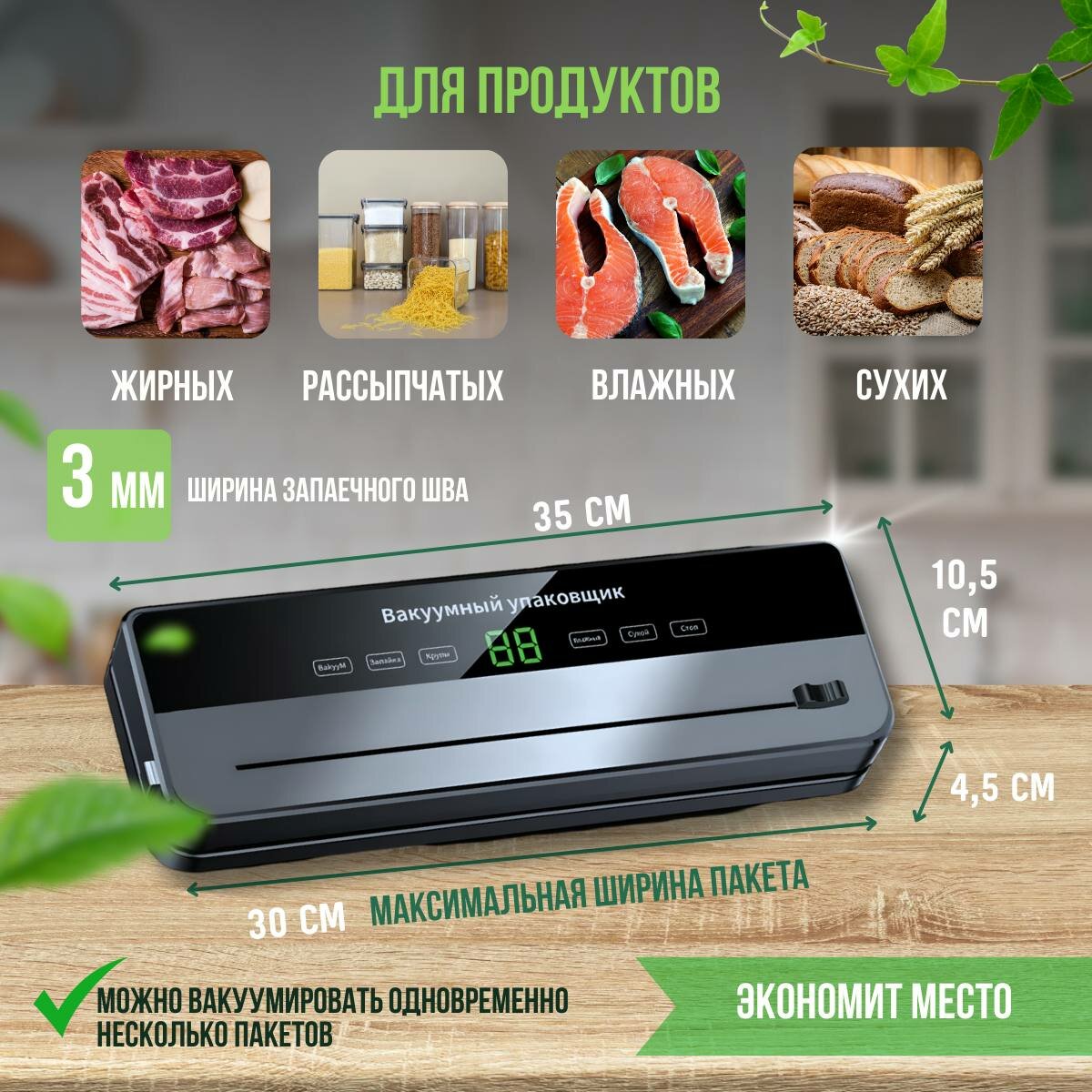 | Подробная комплектация | Вакууматор, кабель питания, инструкция, пакеты 10 шт. |