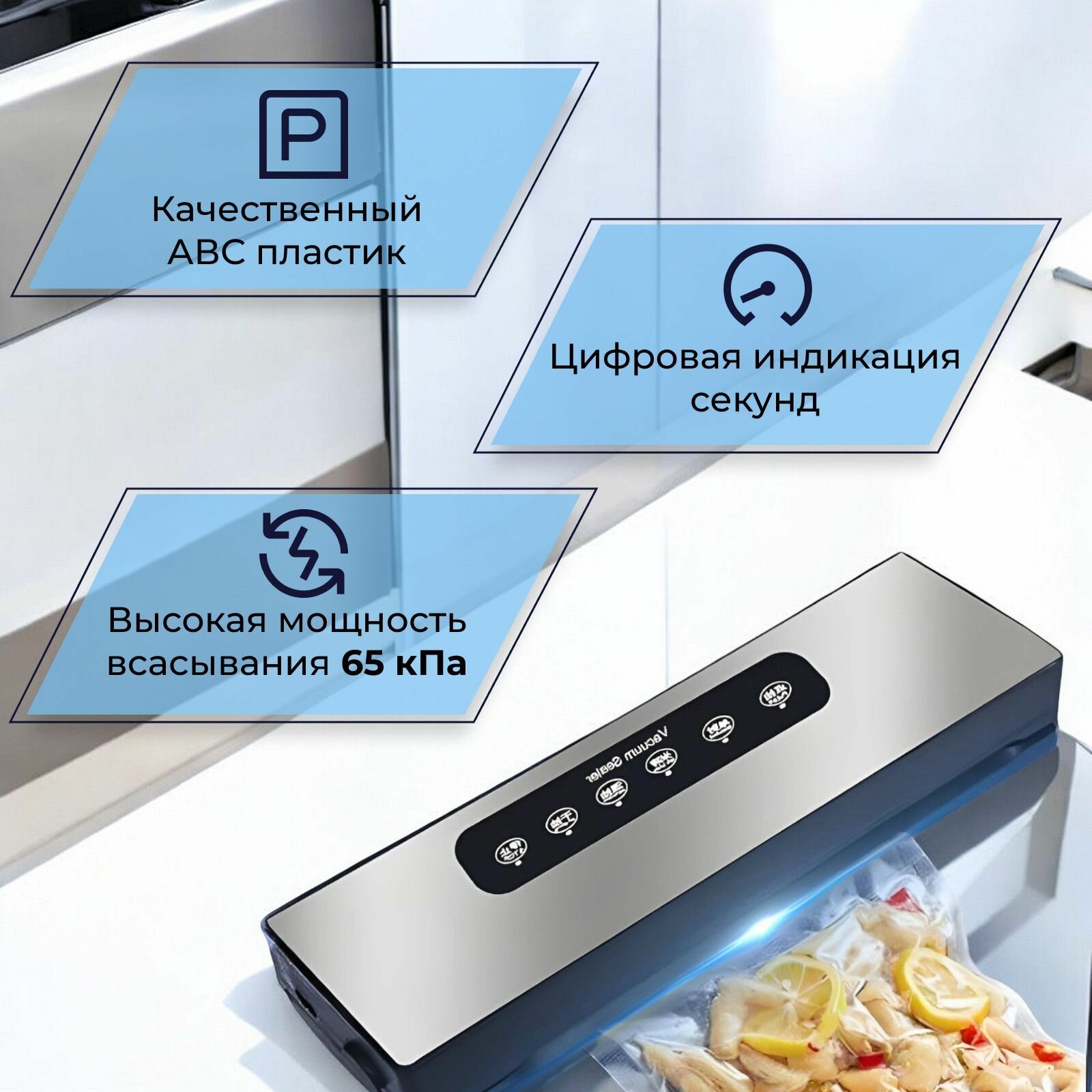 | Особенности | Встроенный резак для пакетов, Выбор режима для сухих и влажных продуктов |