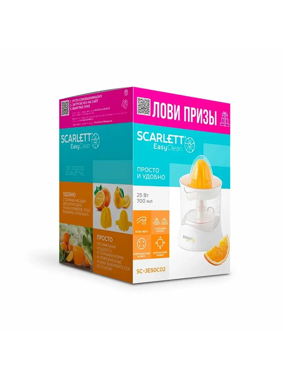 Соковыжималка для цитрусовых SCARLETT SC-JE50C02, 25 Вт, информация: