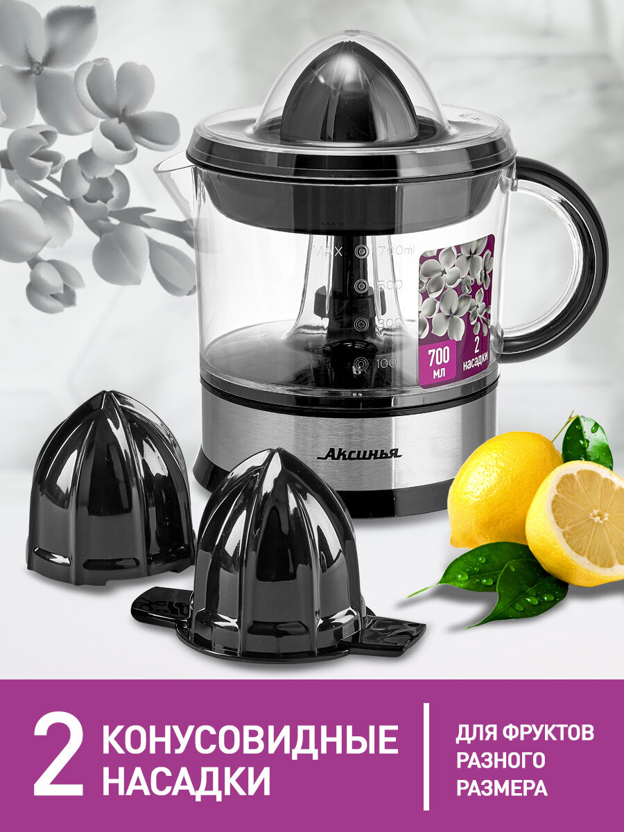 Соковыжималка Аксинья КС-2200 электрическая, 2 насадки, 700 мл, черная информация: