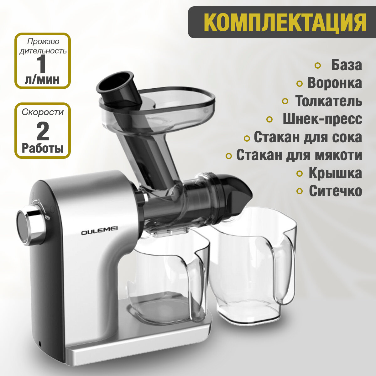 Соковыжималка шнековая OULEMEI OLM-ZZA004, нержавеющая сталь, 160Вт