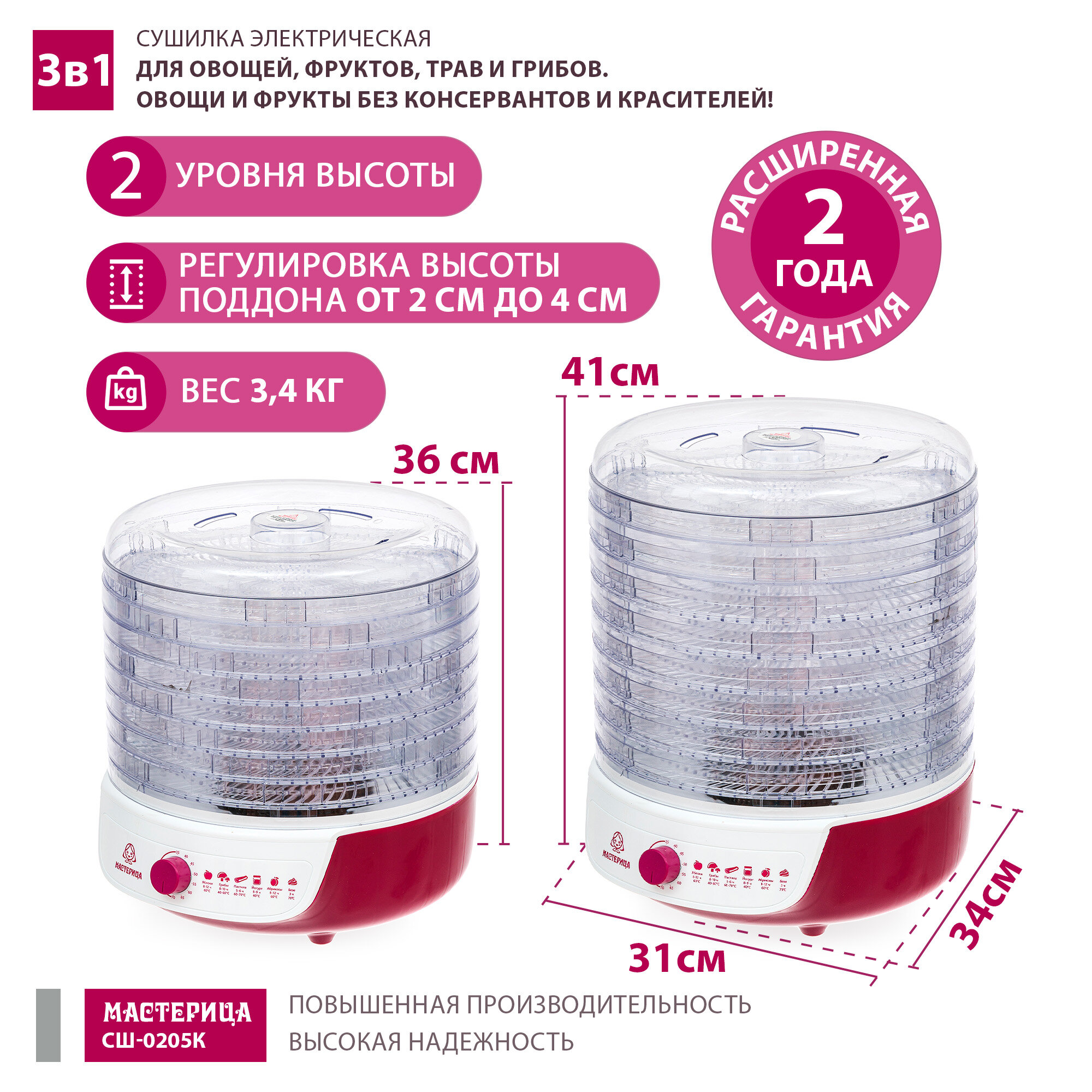 Отзывы на Сушилка для овощей с функцией йогуртница Мастерица СШ-0205К+3 поддона для пастилы