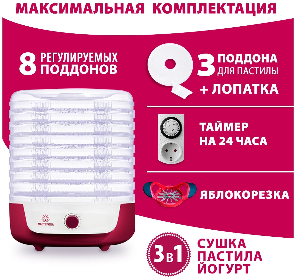 10 цен на Сушилка для овощей с функцией йогуртница Мастерица СШ-0205К+3 поддона для пастилы+таймер+яблокорезка