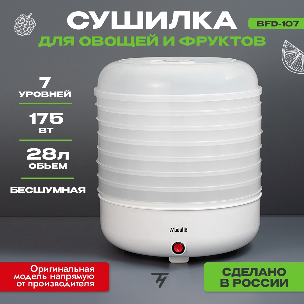 Отзывы на Сушилка для овощей и фруктов электрическая, дегидратор ВOULLE BFD-107W 7 уровней 28 л белая