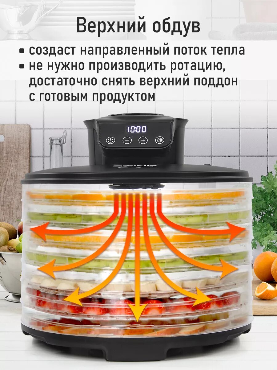 10 цен на Дегидратор сушилка для овощей электросушилка STINGRAY ST-FD712B с верхним обдувом 7 поддонов черный