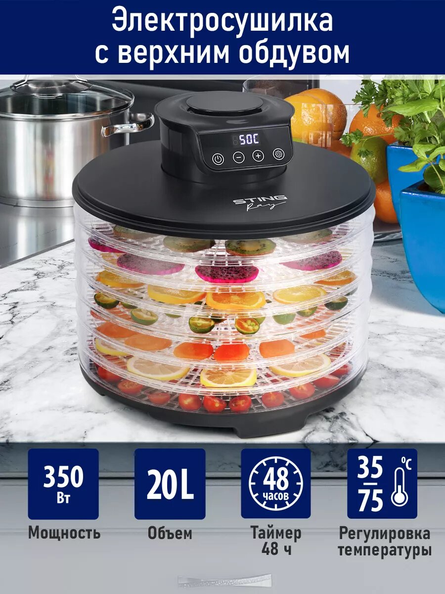 Отзывы на Дегидратор сушилка для овощей электросушилка STINGRAY ST-FD712B с верхним обдувом 7 поддонов черный