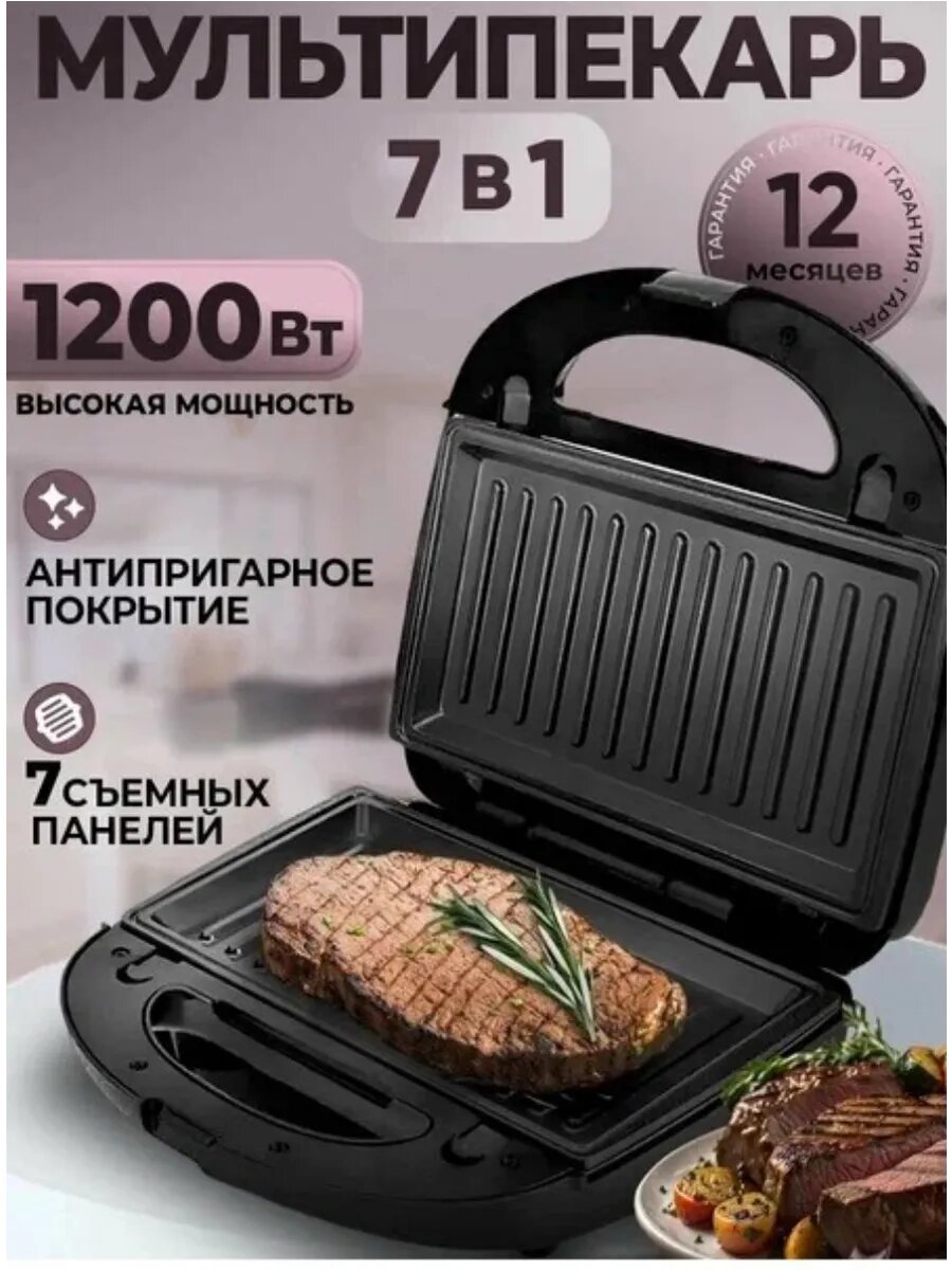 Мультипекарь 7 в 1, индикатор температуры, мощность 1200Вт, черный