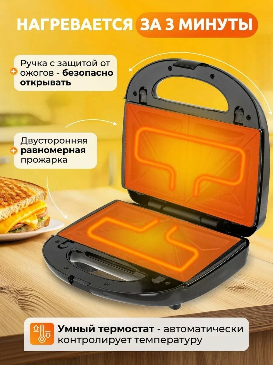 Электрический мультипекарь, гриль, сендвичница, индикатор нагрева,750Вт, черный