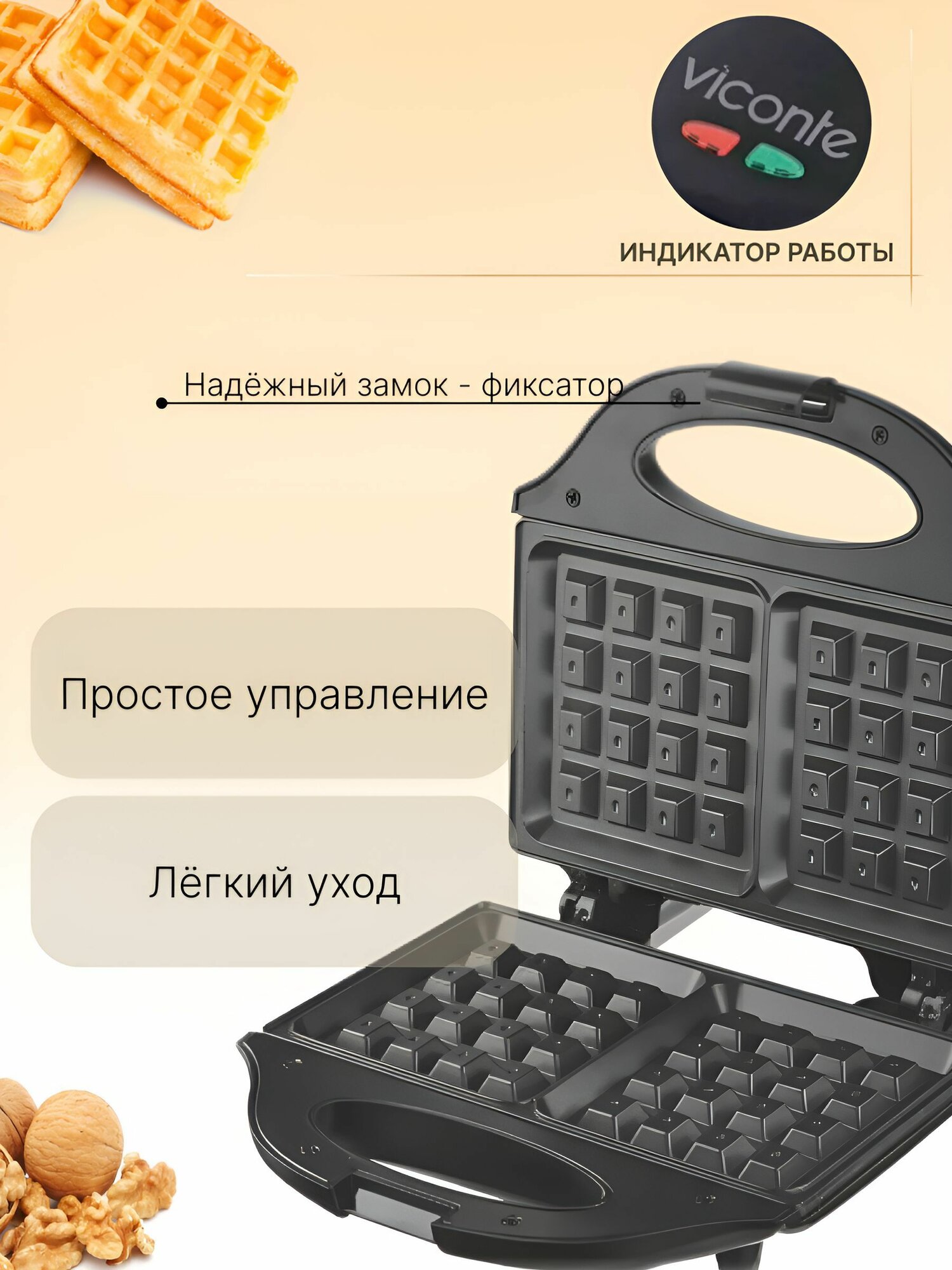 Электровафельница Viconte 800 Вт VC-165 информация: