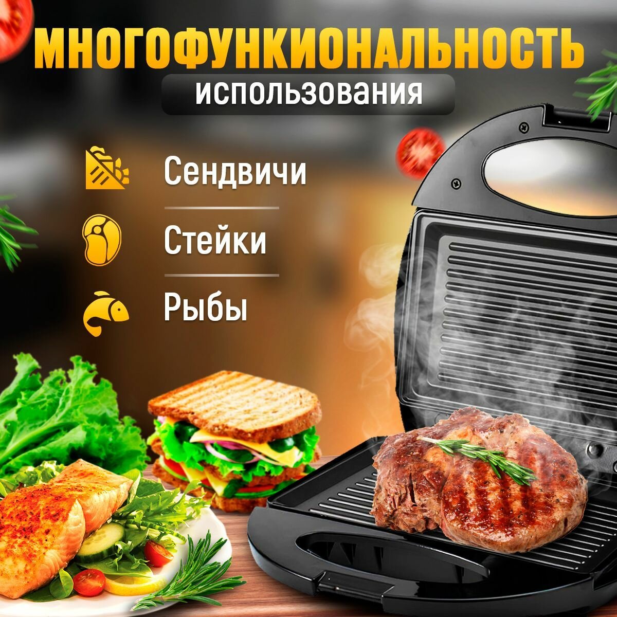 10 цен на Бутербродница электрическая с антипригарным покрытием / Сендвичница для кухни / Электрогриль для дома
