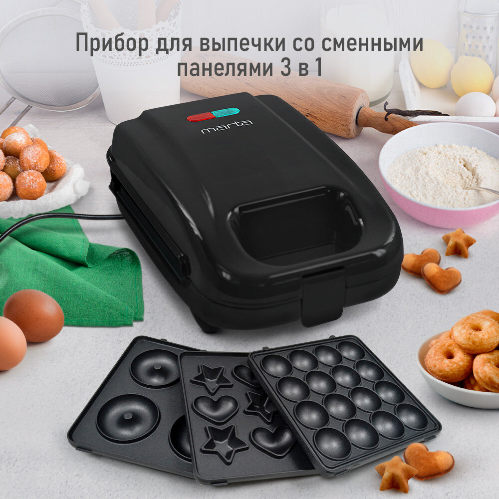 Прибор для выпечки MARTA MT-SM1737C 3 в 1 черный жемчуг информация: