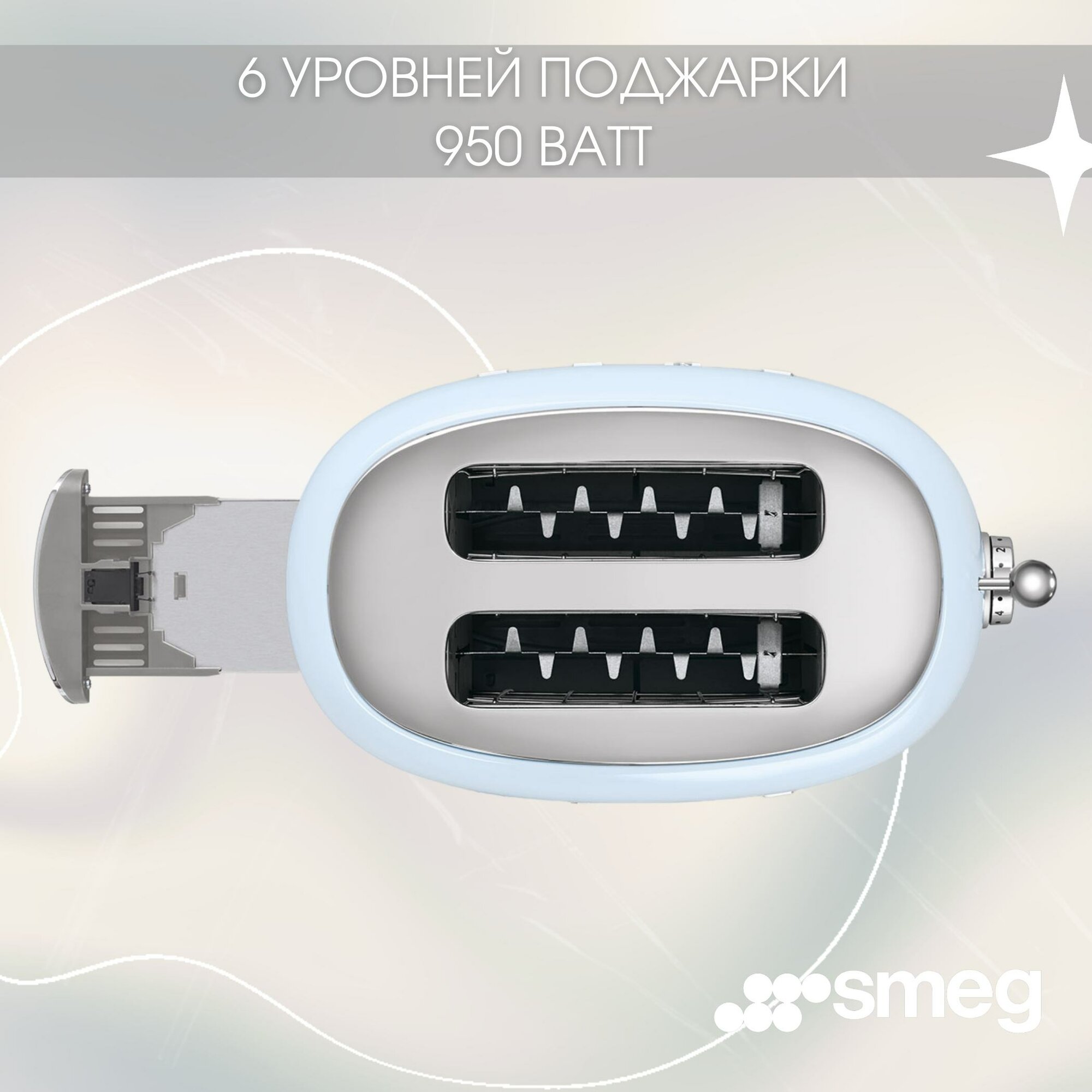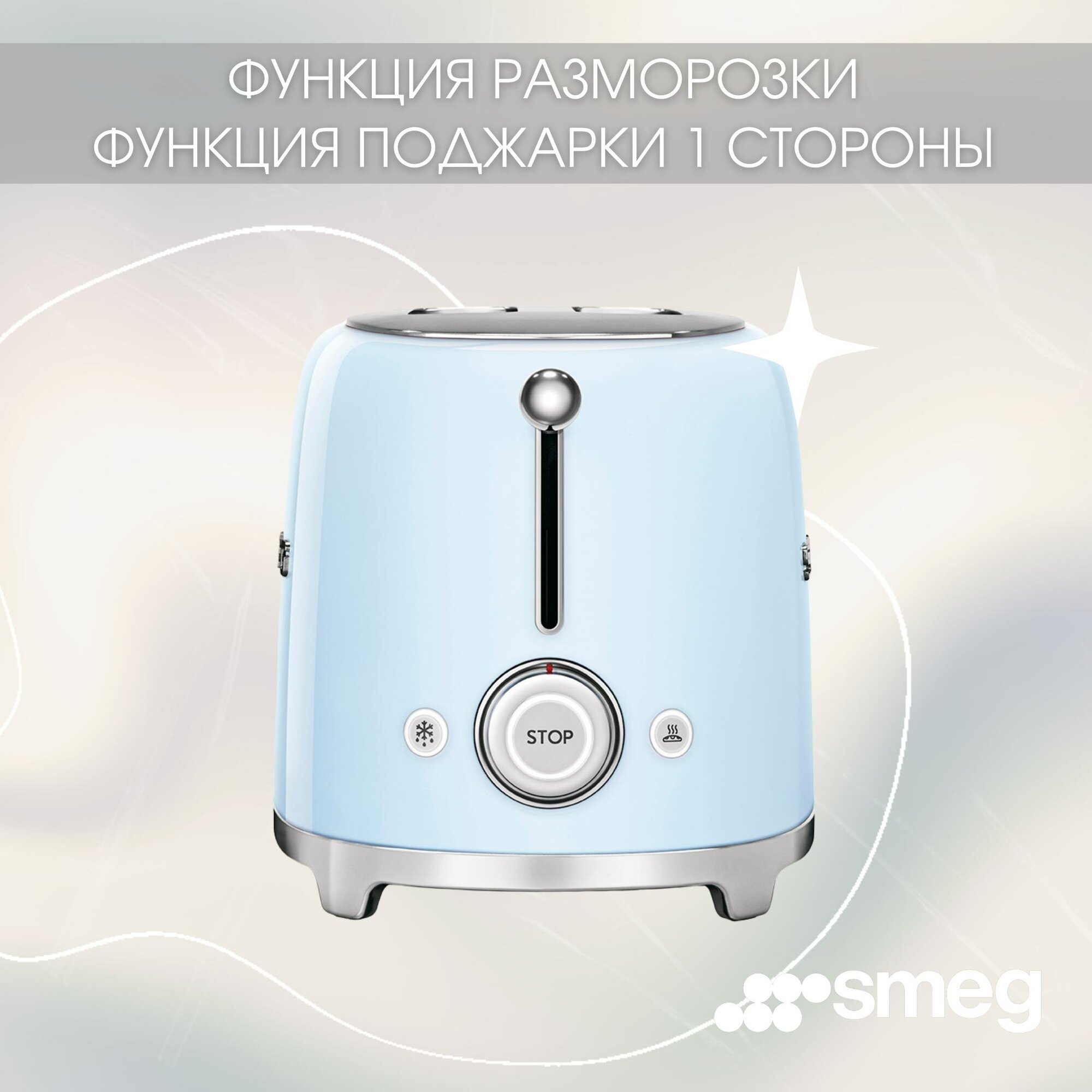 Тостер Smeg "Голубой", 2 тоста, металлический корпус, голубой цвет информация: