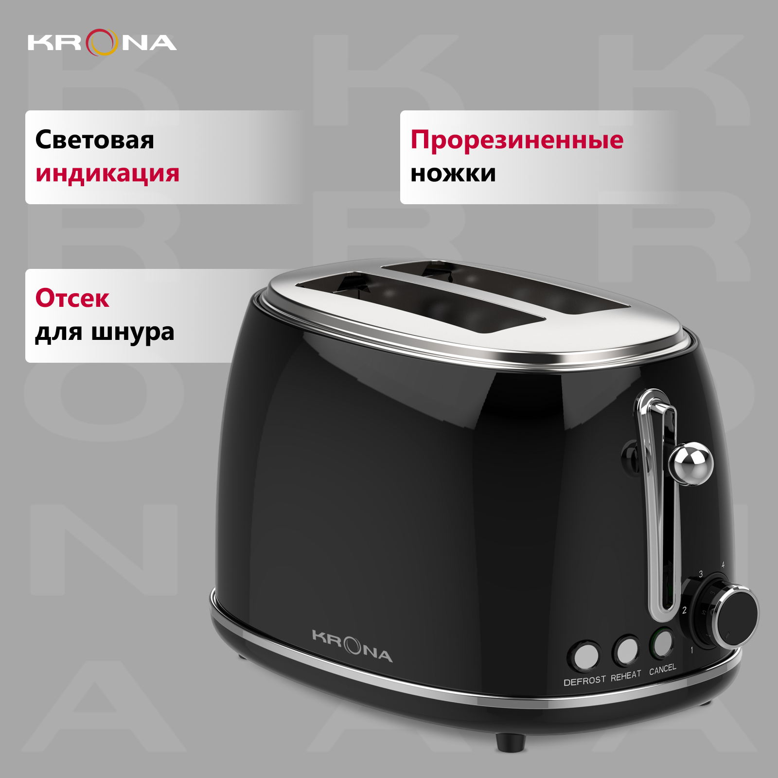 Тостер для хлеба KRONA Stahl Black 2 слота информация: