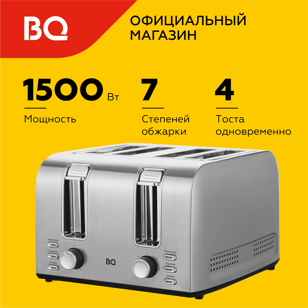 10 цен на Тостер BQ T2001 Серебристый / Мощность 1500 Вт / 7 режимов / Корпус из нержавеющей стали