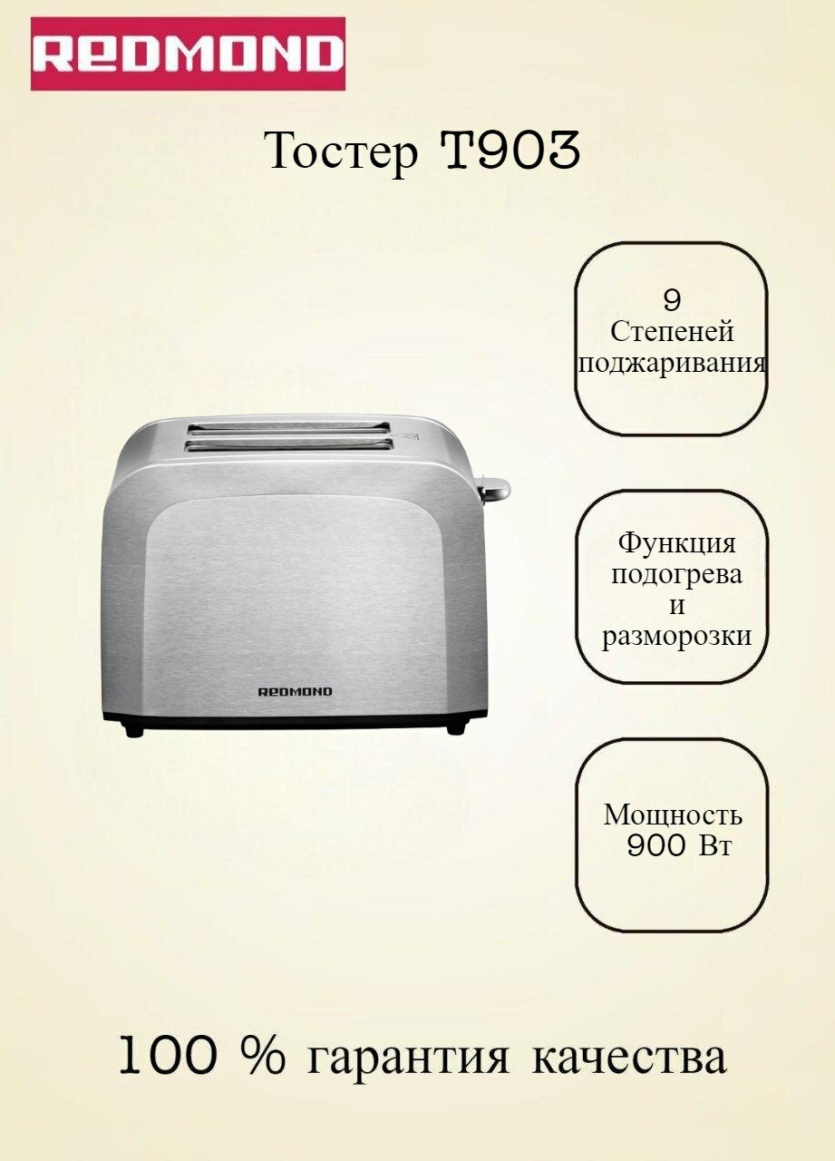 10 цен на Тостер, 9 степеней прожаривания, REDMOND T903, Серый/металл.
