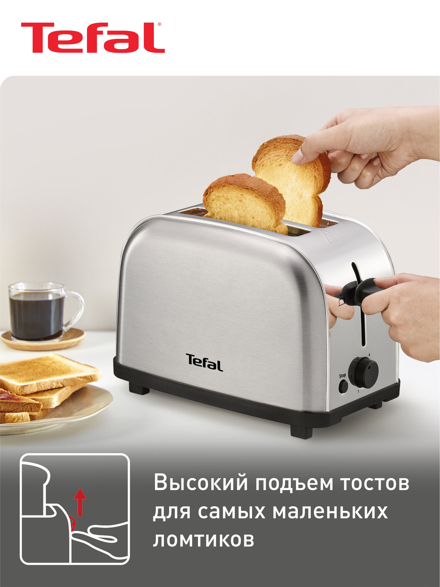 10 цен на Тостер Tefal TT330D30 с 6 уровнями прожарки, функцией остановки, высоким подъемом, 700 Вт, серебристый