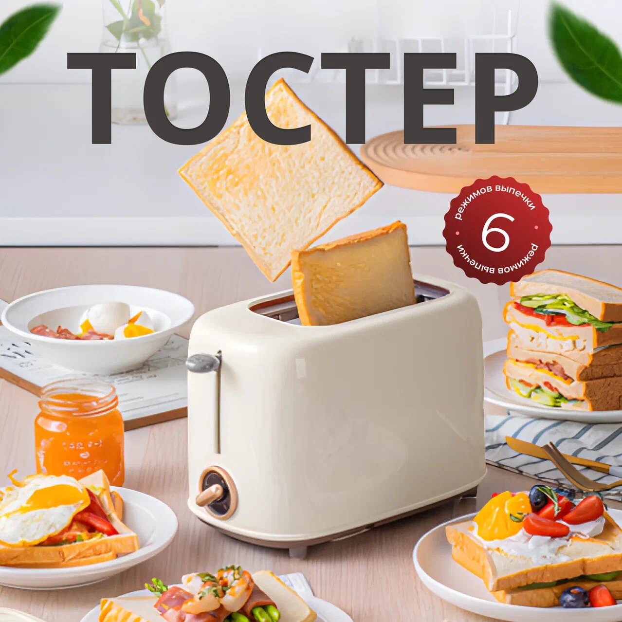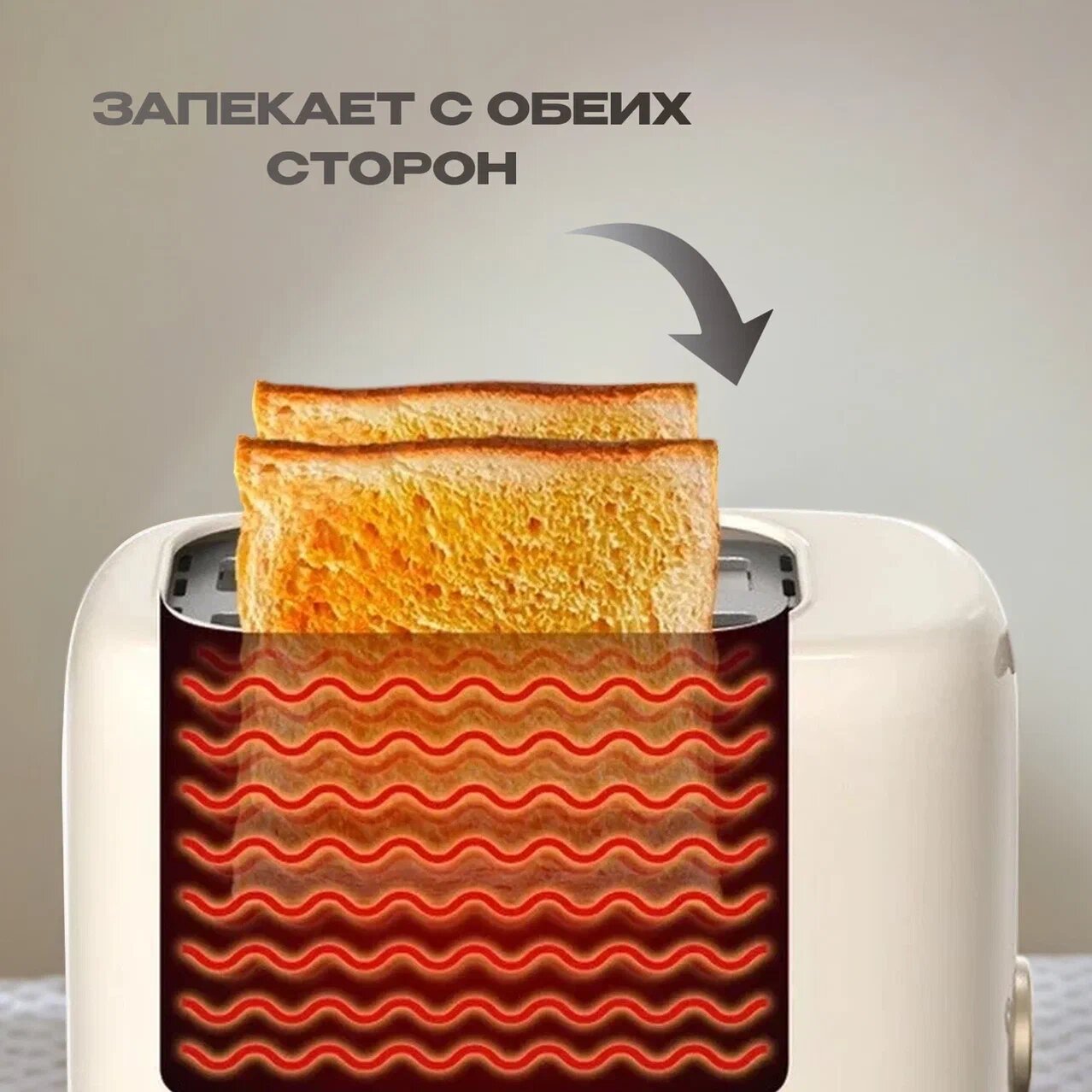 10 цен на Тостер Bear, 6 степеней обжарки, широкие слоты, защита от перегрева, съемный поддон / бежевый