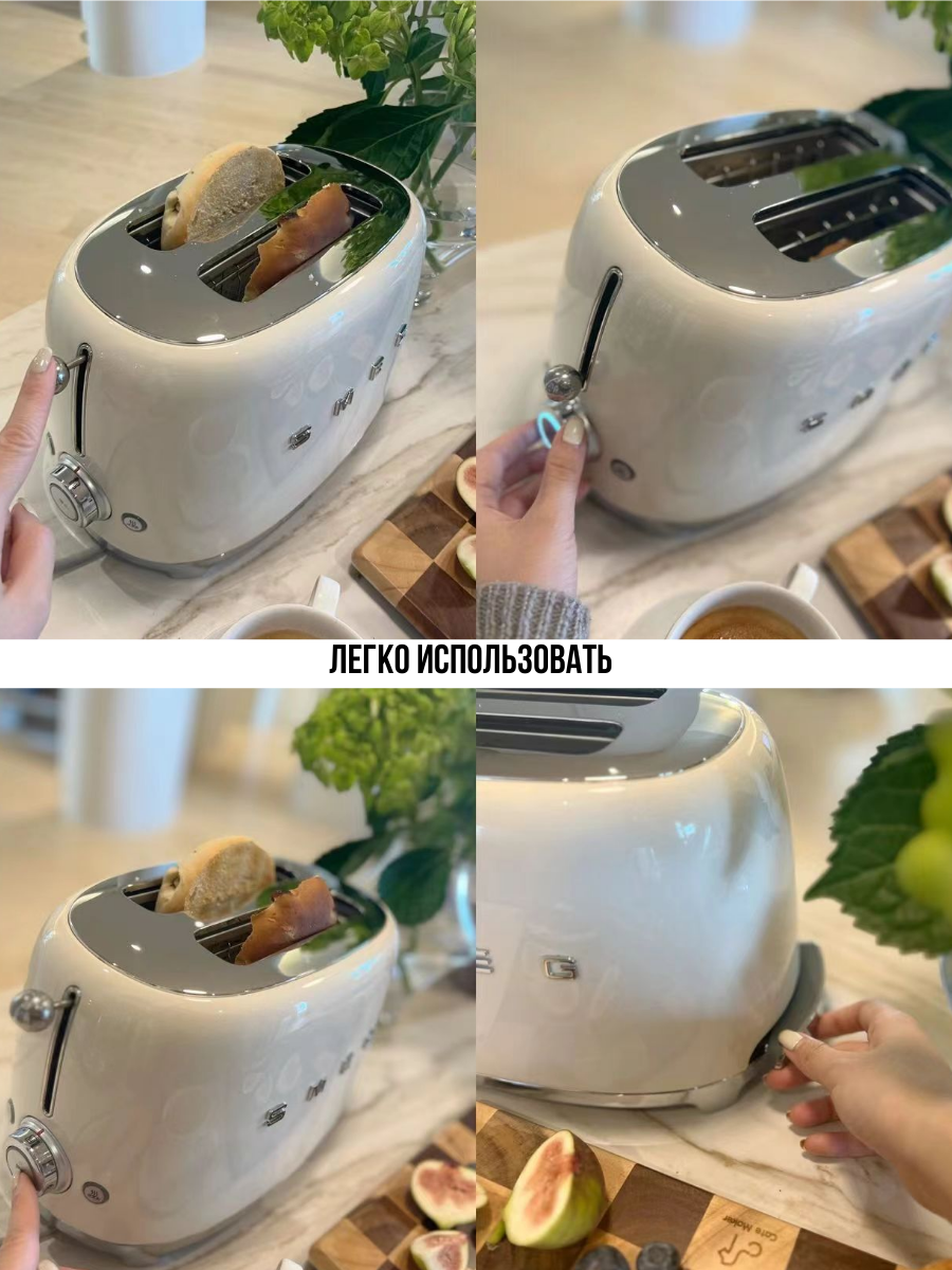 10 цен на Тостер Smeg "Retro", белый, 950W, 2 тоста, механическое управление, 19.8x31.0 см
