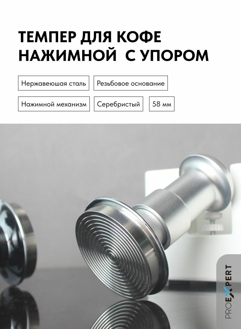 Темпер для кофе нажимной с упором 58 мм, сталь, серебристый информация: