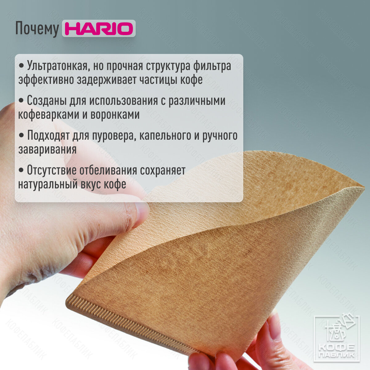 10 цен на Бумажные фильтры для кофе неотбеленные для воронок V60 HARIO VCF-02-100M, (100 шт.)