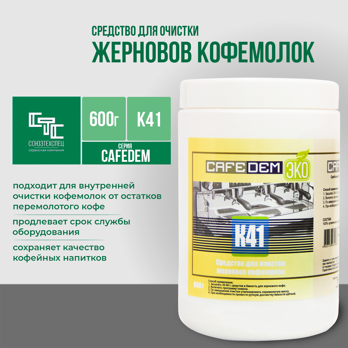 Таблетки для очистки жерновов кофемолок Cafedem К41, банка 600гр. информация: