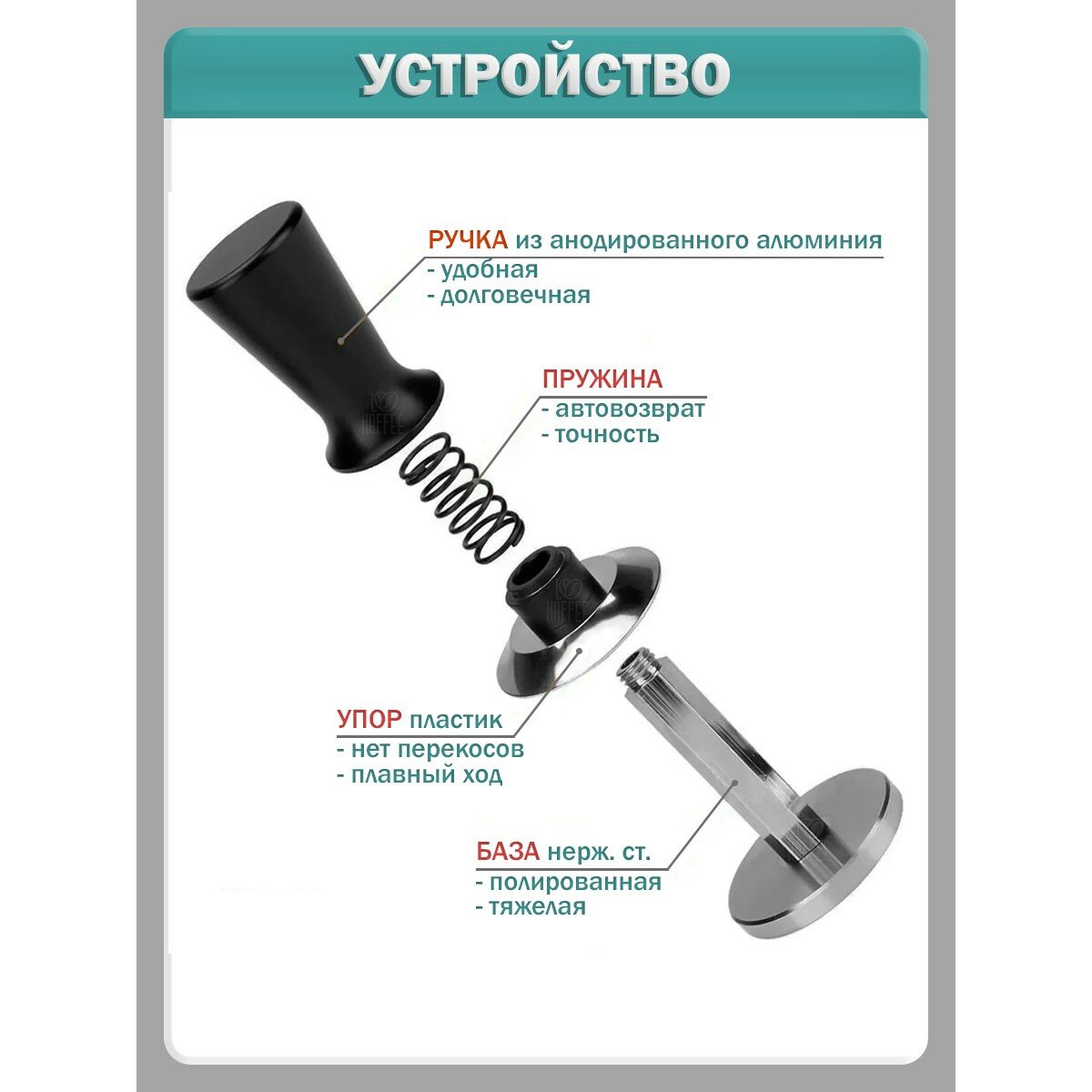 Темпер для кофе нажимной с пружиной и упором - 58 мм информация: