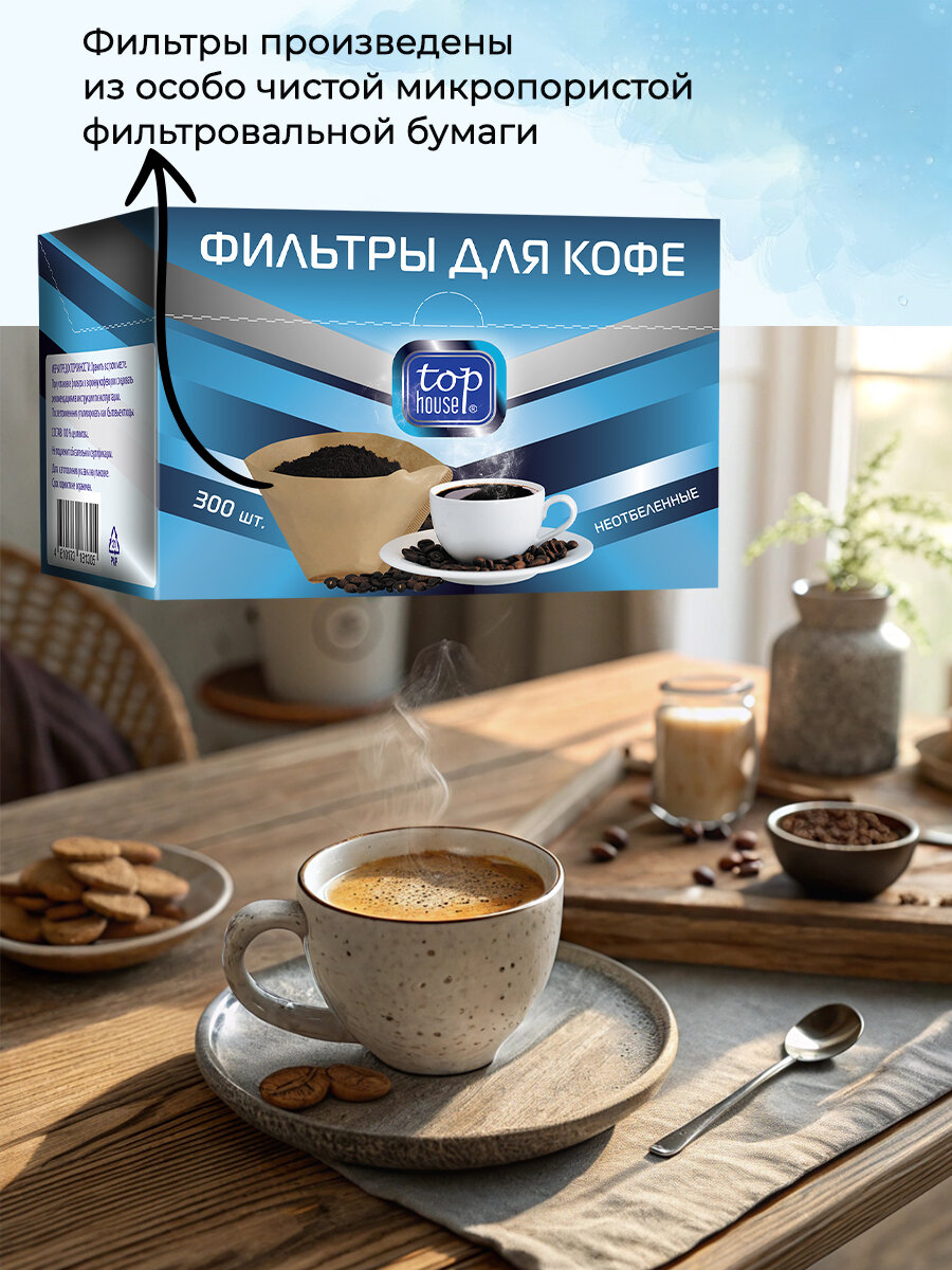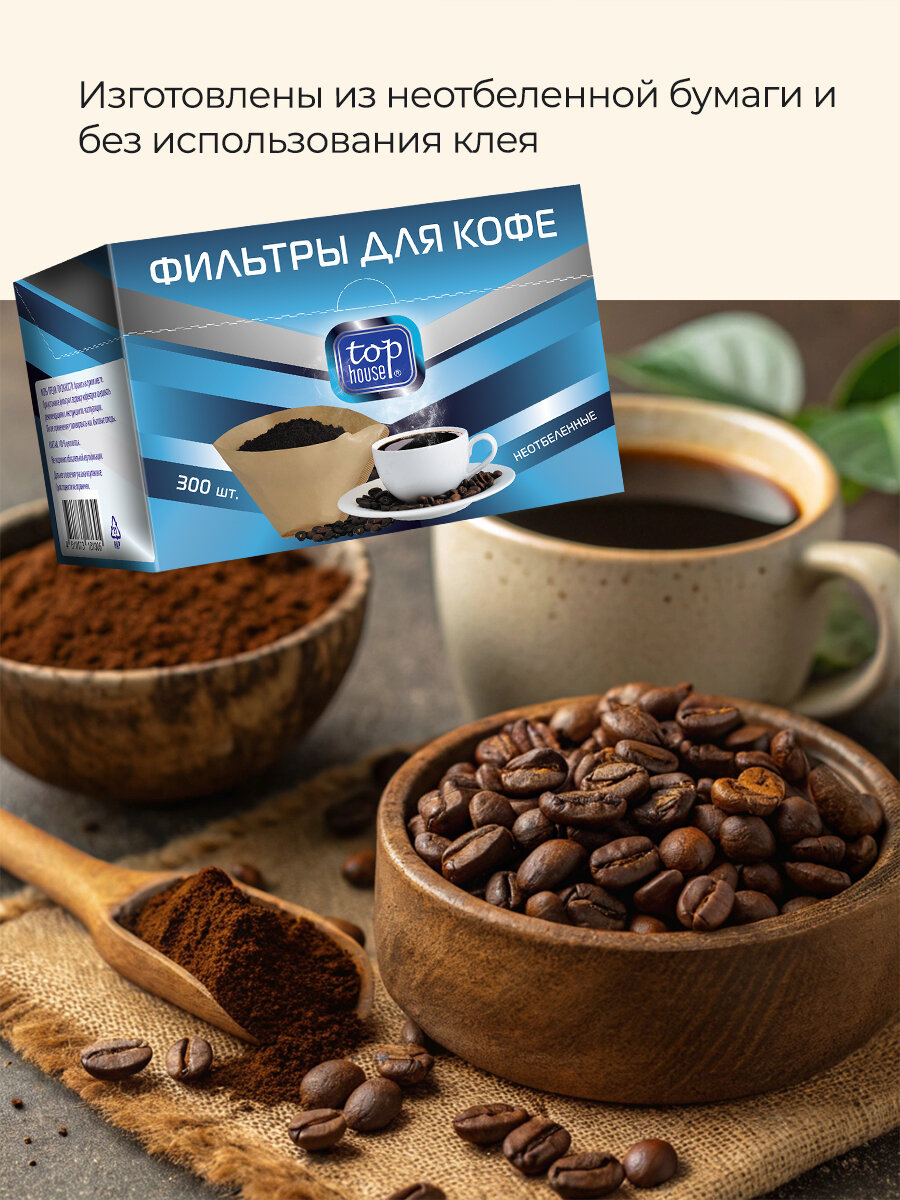 Одноразовые фильтры для капельной кофеварки Top House Неотбеленные Размер 1х4