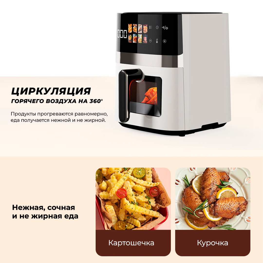 10 цен на Фритюрница-аэрогриль, сенсорное управление, мощность 1350Вт, бежевая