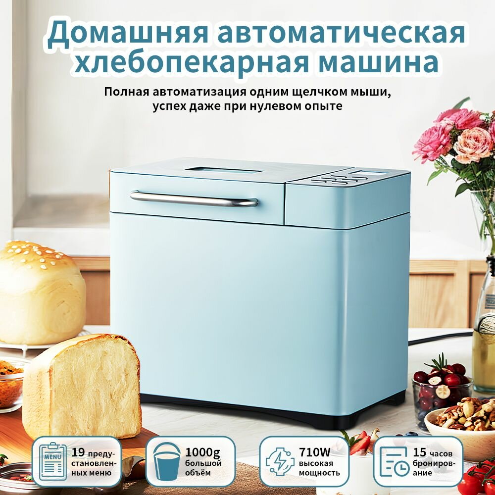 10 цен на Хлебопечка, Автоматическое замешивание, большая вместимость, возможность автоматического добавления орехов, Tiffany Blue