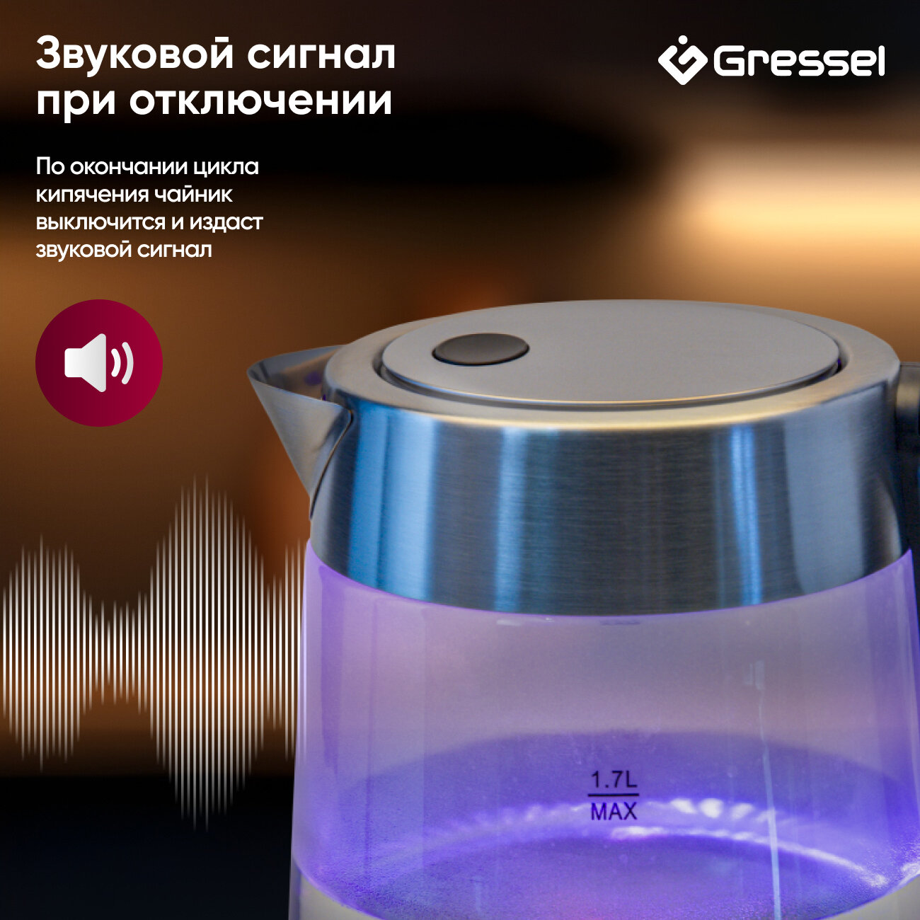 Чайник электрический Gressel GRK-1109S металлический, 1,7л, STRIX-контроллер