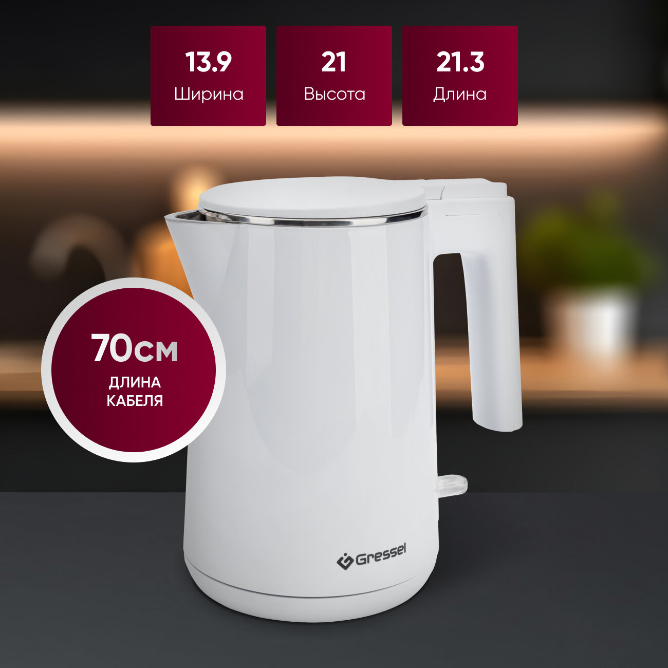 Чайник электрический Gressel GRK-1103 белый, объем 1л, мощность 1500 Вт, STRIX-контроллер информация: